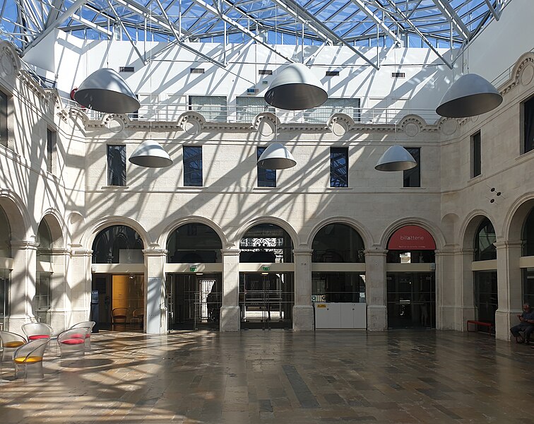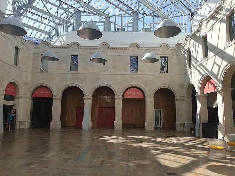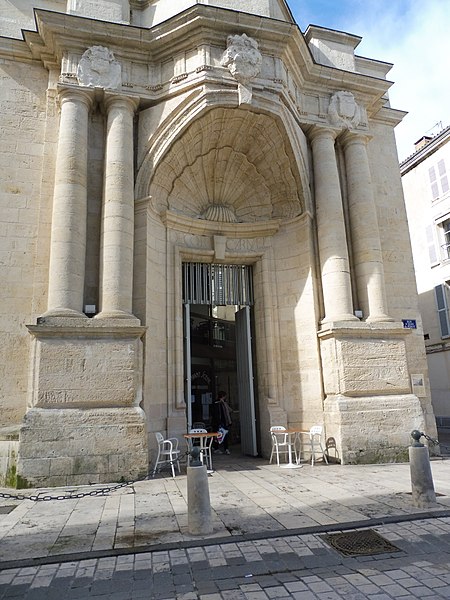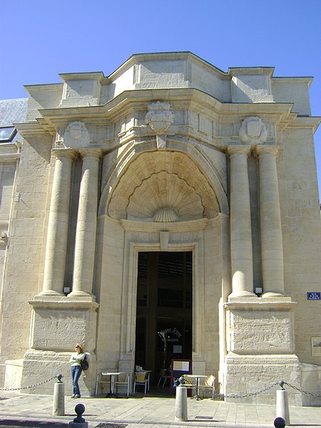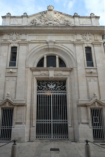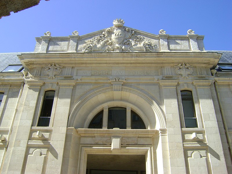 L'ancienne église des Carmes, devenue marché au poisson, se situe à La Rochelle (Charente-Maritime). Sa façade conserve quatre colonnes doriques et la porte est abritée par une vaste coquille sculptée. Les Carmes s'établissent à La Rochelle à la fin du XIIIe siècle et font édifier un monastère dans le quartier du Perrot, qui est rasé en 1556 sur ordre royal pour laisser place à une citadelle. Après un séjour à l'hôpital Saint-Julien et une émigration liée aux troubles des guerres de Religion, ils reviennent en 1628 et reconstruisent un nouveau couvent entre 1645 et 1665, puis une chapelle en 1676-1677. Devenu bien national en 1791, le couvent sert d'entrepôt des douanes à partir de 1808, puis accueille le marché au poisson dès 1841, d'abord dans le jardin, puis dans le cloître et la chapelle après le transfert des douanes à l'église Saint-Nicolas en 1887. En 1896, l'architecte Corbineau procède à une quasi-reconstruction du site : il ne conserve que la façade de la chapelle et les arcades du cloître, aménage une vaste halle et crée une nouvelle façade rue Saint-Jean. En 1957 le marché est transféré dans une halle le long du bassin à flot; l'ancien encan devient salle de sport, puis est transformé en maison de la culture lors d'aménagements réalisés en 1980 par J.-P. Boutet. Des pierres sculptées de la chapelle ont été déposées dans le jardin du musée d'Orbigny-Bernon et des monuments funéraires, à la bibliothèque municipale. Les bâtiments accueillent aujourd'hui La Coursive. L'immeuble est inscrit au titre des monuments historiques par arrêté du 23 février 1925.