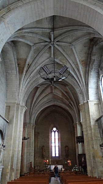 L'église Notre-Dame-de-l'Assomption se situe à Thiviers, dans le département de la Dordogne. D'origine romane, elle présente un transept et un chœur dont l'abside arrondie a été, semble-t-il, transformée en un mur plat. Le transept, qui devait autrefois être surmonté d'une coupole, est aujourd'hui couvert d'une voûte d'ogives à liernes et tiercerons ; la dernière travée de la nef, remplacée également par une voûte ogivale, conserve les impostes des piles qui soutenaient la coupole et la coursière de communication qui la traversait. Félix de Verneilh a affirmé que l'édifice était primitivement coiffé de deux coupoles de huit mètres de diamètre et qu'une abside en hémicycle avait été refaite au XIIIe siècle avec un fond plat, mais il n'apporta pas de documents permettant de confirmer ces interprétations, qui restent basées sur l'analyse de la maçonnerie. Les chapiteaux du transept et du chœur, d'exécution simple mais pittoresque, remontent probablement au XIIe siècle ; on y trouve notamment des scènes du Christ remettant les clés à saint Pierre et une hostie à sainte Madeleine, deux personnages agressant un troisième, Samson terrassant le lion, ainsi que des rinceaux et feuillages. La nef fut entièrement voûtée d'ogives ; pour la dernière travée et le carré du transept, la voûte est ornée de liernes et de tiercerons, et la date de 1515 est lisible, correspondant au remplacement de la coupole ; la voûte en étoile du transept paraît avoir été lancée en 1511 après la ruine de la coupole. En 1503, un arrêt du parlement de Bordeaux ordonna d'affecter aux réparations de l'église le séquestre des revenus de l'archiprêtre de Thiviers. Des travaux sur le clocher sont signalés en 1782. Dans les années 1850, l'architecte départemental Bouillon alerta le conseil municipal sur l'absence de fondations et la dégradation des murs et voûtes, entraînant un emprunt en 1860 et des travaux principalement sur la façade sud, réceptionnés en 1865. En 1882, l'architecte Jean-Louis Labbé reprit le clocher et la façade occidentale, et en 1886 il renforça le chevet et la façade nord en doublant murs et contreforts après avoir constaté la faiblesse de certaines voûtes. L'intérêt de l'édifice tient en grande partie à ses chapiteaux romans de la croisée du transept et à la coursière subsistante, que Eugène Lefèvre-Pontalis considérait comme une particularité du Périgord. L'église possède des vitraux de la fin du XIXe siècle, dont un réalisé par Lucien-Léopold Lobin ; le chevet porte un vitrail représentant le couronnement de la Vierge, le croisillon nord présente des verrières consacrées à saint Joseph et à sainte Anne avec la Vierge, et la nef conserve un vitrail du baptême du Christ attribué à l'atelier de Lobin. L'édifice est inscrit au titre des monuments historiques depuis le 15 novembre 1926.