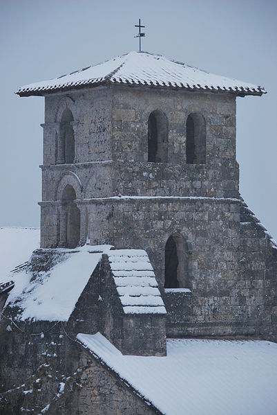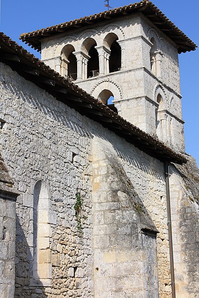 L'église primitive fut en grande partie démolie pendant la guerre de Cent Ans. Le mur sud et la partie orientale du clocher sont d'origine romane ; l'édifice fut relevé vers 1500 et voûté d'ogives, les travées s'allongeant progressivement vers l'est.