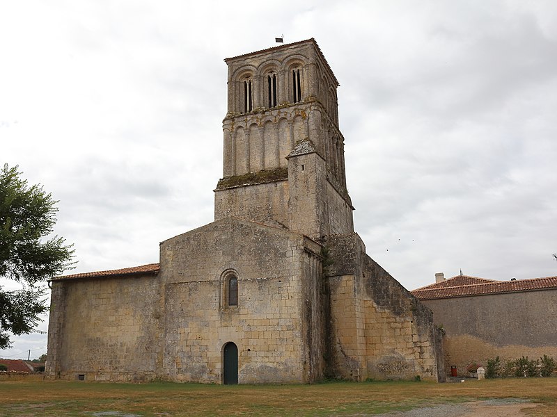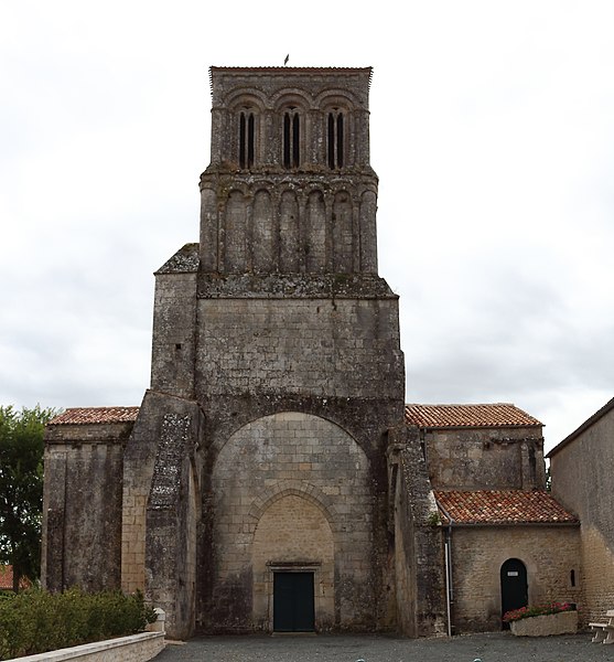 L'église Notre-Dame est une église catholique située à Thézac, dans le département de la Charente-Maritime. Elle est dominée par un clocher carré formé de deux étages en retrait; l'étage supérieur est ajouré sur ses quatre faces tandis que l'étage inférieur présente des arcatures d'applique s'amortissant sur des glacis. De l'édifice primitif du XIIe siècle subsistent le chevet, le transept, les chapelles gothiques et le clocher, la nef ayant été détruite lors des guerres de religion. Le clocher est reconnu comme l'un des mieux conservés de la Saintonge romane. À l'intérieur, les volumes sont couverts de coupoles sur trompes, consolidées par des nervures saillantes. La crypte-ossuaire, accessible par un petit escalier, est recouverte d'une croisée d'ogives primitive; une banquette de pierre ceinture la crypte à environ cinquante centimètres du sol actuel. L'église Notre-Dame est classée au titre des monuments historiques depuis le 11 juillet 1903. Pour compléter la documentation, on peut se référer aux listes des églises et des monuments historiques de la Charente-Maritime ainsi qu'aux ressources Clochers de France et Mérimée; les portails du catholicisme, de l'architecture chrétienne, des monuments historiques français et de la Charente-Maritime sont également cités.