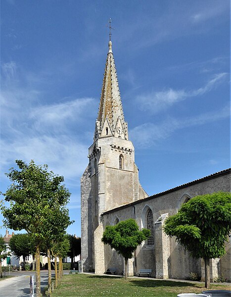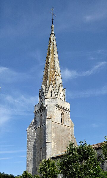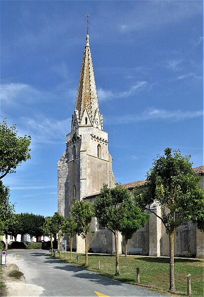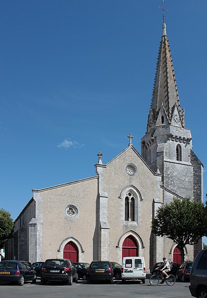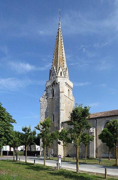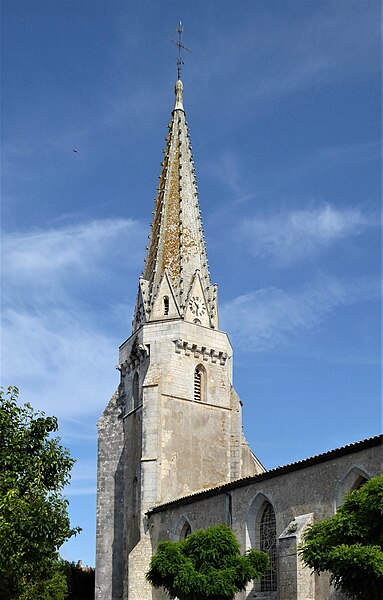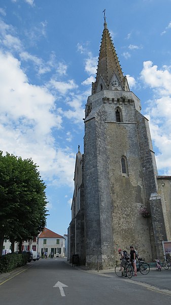 L'église Notre‑Dame de l'Assomption, située à Sainte‑Marie‑de‑Ré (Charente‑Maritime, Nouvelle‑Aquitaine), est une église paroissiale en grande partie reconstruite au XIXe siècle. La paroisse est mentionnée dans la seconde moitié du XIIe siècle. En 1467, l'église était fortifiée et entourée d'un fossé ; des vestiges de ces fortifications sont encore visibles. Des travaux importants sont signalés en 1608, puis une reconstruction menée en 1862 par Massiou a donné sa physionomie actuelle à l'édifice. Une partie du mur latéral droit a été conservée, ainsi que le clocher du XVe siècle dont la voûte paraît postérieure. Le clocher, jadis peint en noir et utilisé comme amer, se termine par une flèche octogonale en granite. La plate‑forme du clocher est entourée d'un bahut supérieur porté en encorbellement sur quatre côtés et percé d'archères ; les quatre autres côtés du parapet reposent sur le prolongement des contreforts d'angle. Ces mâchicoulis ont été obturés lors des restaurations et partiellement reconstruits au XIXe siècle ; quatre portes donnent accès à la terrasse. Le clocher est classé au titre des monuments historiques en 1921. L'intérieur comporte une nef, un confessionnal, un chevet et un autel.