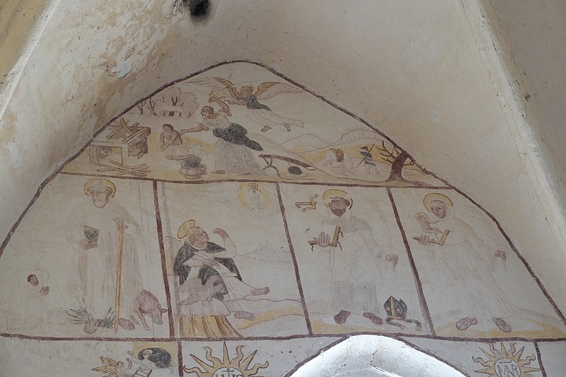 Des fresques ont été mises au jour en 1934 lors de la préparation de communions solennelles; datées du XVe ou du XVIe siècle, elles représentent notamment une Vierge de Pitié sur le mur ouest, saint Nicolas sur le mur est ainsi que diverses scènes sur le mur nord, dont l'Échelle de Jacob et un saint évêque.