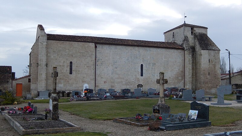 L'église Saint-André, à Blanzay-sur-Boutonne (Charente-Maritime, Nouvelle-Aquitaine), est précédée d'un massif clocher carré au toit plat qui occupe toute la largeur de la nef. La base du clocher, jusqu'au premier étage, date du XIIe siècle ; sa partie supérieure a été remontée au XVe siècle. La façade occidentale s'ouvre sur une porte ornée d'une voussure, encadrée de chaque côté par une colonne aux chapiteaux sculptés. L'abside ayant disparu, l'édifice se termine par un grand mur plat percé d'une baie gothique. À l'intérieur, la nef comprend quatre travées ; du côté droit, quatre colonnes romanes aux chapiteaux décorés rythment l'espace. La première travée, allongée et voûtée d'ogives, sert de base au clocher. L'église est inscrite au titre des monuments historiques par arrêté du 22 août 1949.