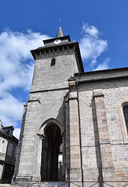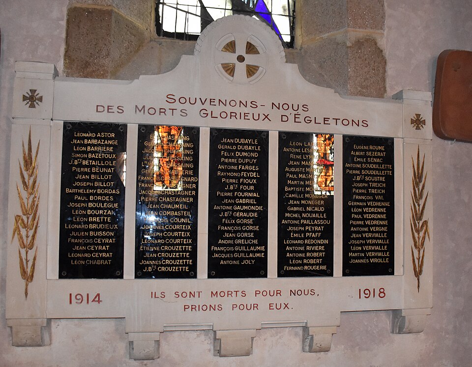 L'église Saint-Antoine-l'Ermite, construite dans les années 1200 sous le vocable de Notre-Dame et saint Antoine l'ermite, ne conserve essentiellement que son clocher-porche médiéval. Le premier niveau du clocher, daté de 1190-1220, présente quelques chapiteaux romans sculptés de feuillages et de masques ; au second niveau, une coupole est percée d'un oculus. Le beffroi, en partie roman, est accompagné d'une tourelle d'escalier à vis ajoutée au XIXe siècle. Ce clocher-porche et son décor sculpté constituent un repère important entre l'art roman et le gothique en Limousin. En 1318, l'église d'Egletons était une annexe de celle de Rosiers. Déjà en très mauvais état en 1740, elle a été restaurée entre 1748 et 1750, puis réparée au sanctuaire en 1776 et de nouveau en 1786 ; à cette époque, le chaume a été remplacé par des bardeaux. D'importants travaux ont été menés par l'architecte Bardon entre 1880 et 1886 : la nef a été reconstruite dans le style ogival, les anciennes chapelles latérales ont été remplacées par des collatéraux voûtés d'arêtes, un transept a été ajouté et l'abside demi-circulaire reprise et surhaussée. Les contreforts et le portail donnant sur la nef ont également été refaits à la fin du XIXe siècle. Des vitraux contemporains ont été réalisés par Blanchet et Lesage en 1957.