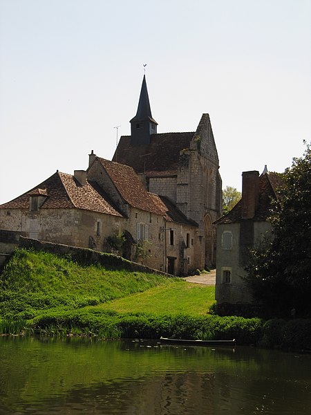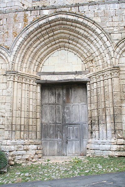 Cette travée est le seul vestige d'une ancienne église abbatiale, partiellement détruite vers 1835 ; d'autres éléments furent définitivement supprimés dans la deuxième moitié du XIXe siècle lors de la construction d'un pont sur l'Angles et de sa voie d'accès. L'abbaye dont dépendait l'église a été fondée à la fin du XIe siècle par Isenbert Ier, évêque de Poitiers. La première pierre fut posée en 1175 et la dédicace eut lieu en 1192. L'édifice, vraisemblablement réalisé dans le style roman poitevin, présentait un plan en croix latine : une nef de deux travées, un transept pourvu de deux chapelles et un chœur. La façade occidentale, d'une ordonnance très régulière, comporte un portail principal flanqué de deux faux portails plus modestes, deux longues fenêtres géminées au-dessus et un fronton percé de deux baies dont les rampants forment un angle aigu ; à leur base court une corniche portée par des modillons. Le portail principal est traité en quatre voussures ornées de feuillage et reposant sur des chapiteaux à crochets ; les arêtes des piédroits sont ornées de guirlandes de feuillage. Le mur de fond, percé d'une fenêtre à arc en tiers-point, a été édifié au XIXe siècle lors de la réduction de l'église à une seule travée. L'intérieur conserve des chapiteaux gothiques à palmettes. La voûte primitive était en berceau ou en plein cintre ; la voûte actuelle, en bois, date du XIXe siècle. Il subsiste aujourd'hui une travée de la nef et la façade occidentale, tandis que le chevet, le transept, ses absidioles et une travée de la nef ont disparu. L'ampleur des bâtiments conventuels reste difficile à préciser.