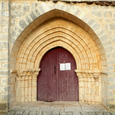 L'église Saint-Eugène, située à Xaintray (Deux-Sèvres), remonte à la fin du XIIe ou au début du XIIIe siècle. Elle se compose d'une nef unique, d'une travée sous clocher et d'une abside romane en hémicycle. L'abside est rythmée intérieurement par une série de larges arcatures portées par des groupes de trois colonnettes. La voûte de la nef a disparu, mais l'on observe les arrachements de voûtes d'ogives. La façade occidentale est un simple pignon percé d'une fenêtre ; l'accès principal se fait par un portail côté sud, composé de cinq rangées de voussures ornées de tores. La façade est également parée de modillons, éléments remarquables du décor. L'édifice est classé au titre des monuments historiques en 1990.
