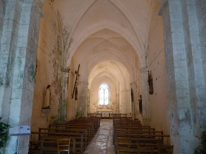 L'église Saint-Front a été édifiée au XIIe siècle puis remaniée jusqu'au XVe siècle et fortifiée pendant la guerre de Cent Ans. Elle repose au-dessus d'une grotte naturelle qui a pu servir de crypte et présente un plan en croix. La première travée, sous le clocher, est couverte d'une coupole sur pendentifs, tandis que la nef comporte trois travées de voûtes sur nervures datées du XIIIe siècle. Au carré du transept, des colonnes rondes de style roman sont adossées à des pilastres. Le chevet plat est orné d'un décor flamboyant du XVe siècle. Le clocher, de plan carré, s'élève sur deux étages au-dessus de la façade ; le deuxième étage de chaque face est percé de deux baies trilobées en arc brisé. Côté sud, une tourelle carrée abrite l'escalier à vis desservant le clocher. Une meurtrière en forme de croix est encore visible, et les assises basses des murs n'ont pas été modifiées depuis l'époque romane.
