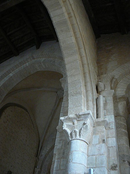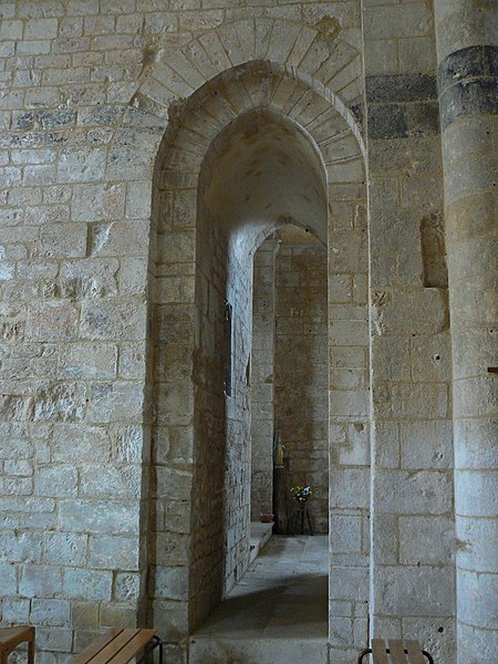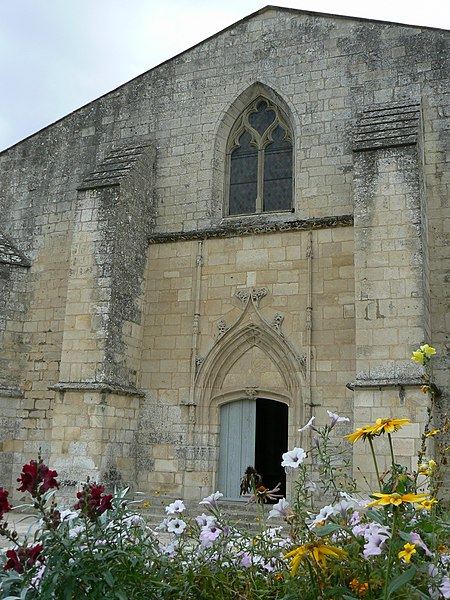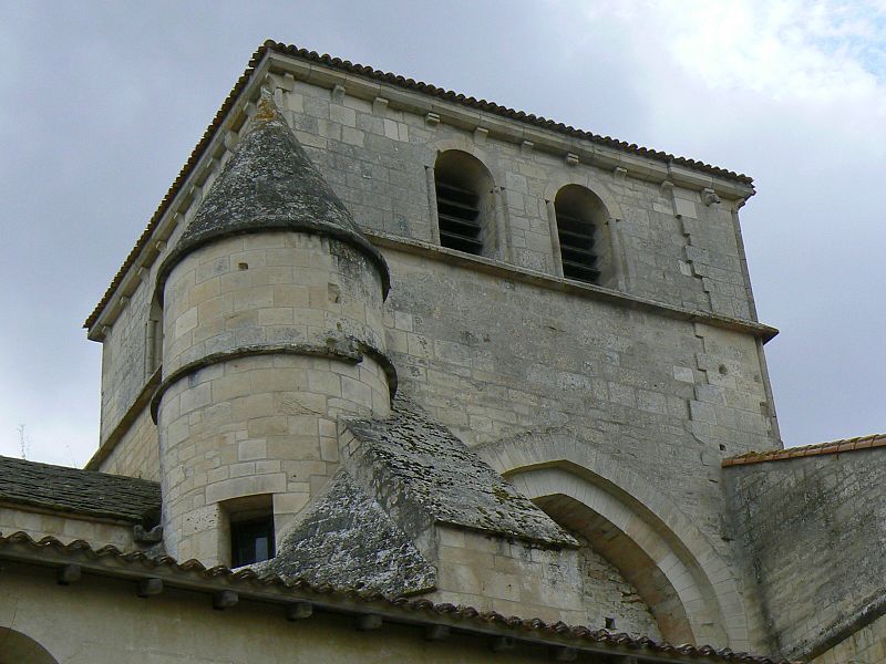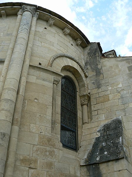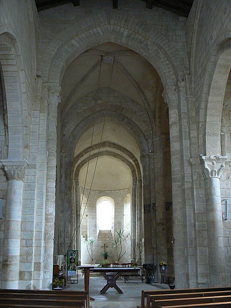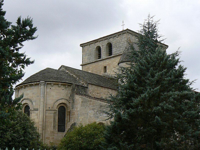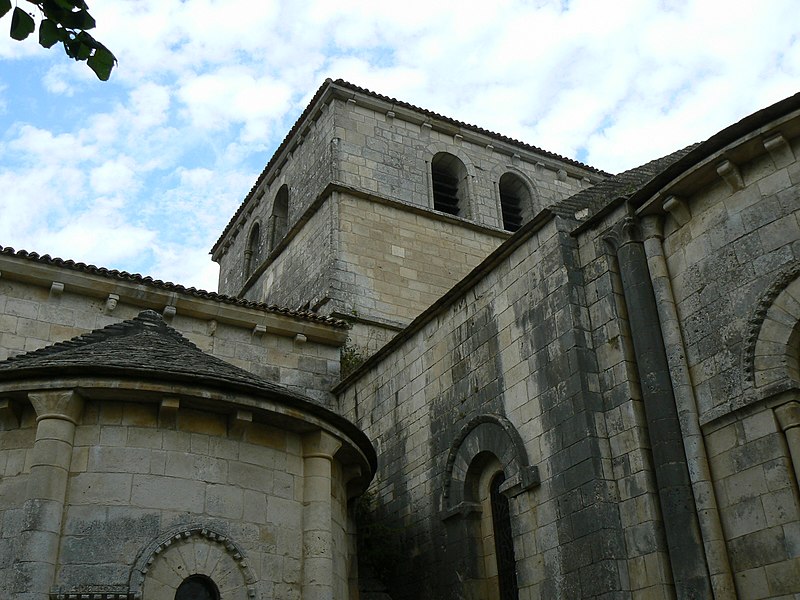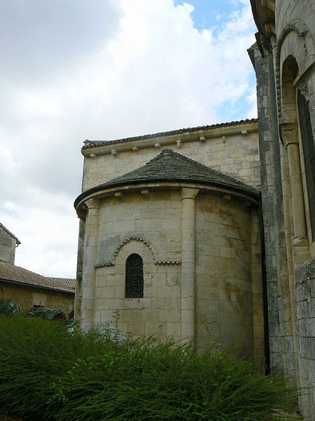 Au sud, des bâtiments formant une cour intérieure pourraient avoir appartenu à un prieuré ou à une congrégation. L'édifice est dominé par un clocher carré placé sur la croisée du transept ; ce clocher paraît remanié. L'architecture laisse supposer une construction du XIIe siècle pour le chevet, le transept et la nef, tandis que le pignon ouest relève de la fin du XVe ou du début du XVIe siècle. L'église adopte le plan classique de la période et de la région : chœur rectangulaire prolongeant une abside circulaire, transepts avec absidioles circulaires, croisée de transept surmontée d'un clocher, nef et deux bas-côtés. Le transept nord et son absidiole ont disparu, remplacés par une sacristie. À l'est, l'abside ronde, prolongeant le chœur rectangulaire adossé à la croisée, est percée de trois baies en plein cintre encadrées de colonnettes aux chapiteaux sculptés. La façade ouest, dominée par un grand pignon divisé en trois par des contreforts, présente dans sa travée centrale une porte surmontée d'une baie, éléments attribués au début du XVIe siècle. L'encadrement de la porte comporte de fines moulures en arc brisé, surmontées d'un gâble en accolade et de pinacles. L'édifice fut sans doute intégralement voûté au XIIe siècle, comme en témoigne la voûte conservée au-dessus du chœur de l'abside ; ces voûtes auraient ensuite été écrasées par le poids de la couverture reposant directement sur elles et se sont effondrées dans la nef, les bas-côtés et le transept. Elles auraient peut‑être été reconstruites à la fin du XIIIe ou au XIVe siècle. Aujourd'hui ne subsistent que la voûte en berceau en arc brisé du chœur et les voûtes d'ogives de la croisée du transept, attribuées aux XIIIe et XIVe siècles. On observe également des traces de peintures murales.