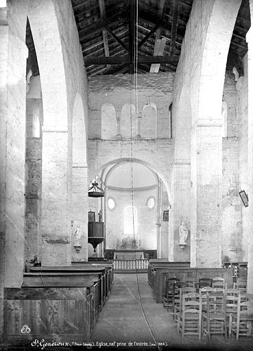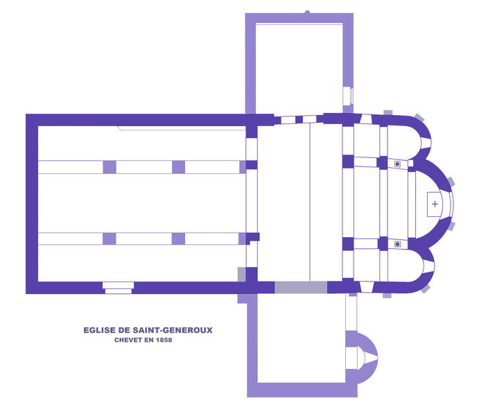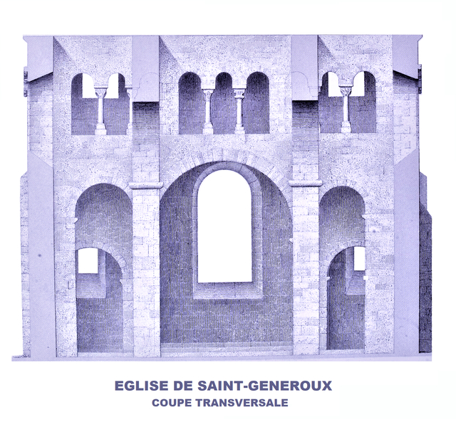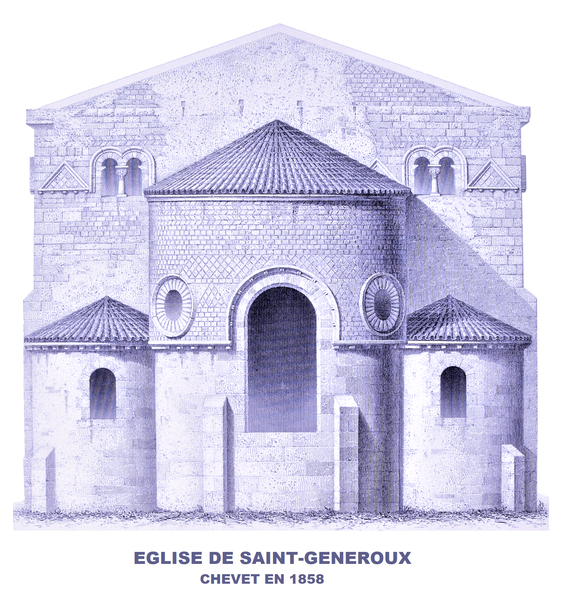 L'église Saint-Généroux, située dans la commune du même nom (Deux-Sèvres), est l'ancienne église d'un prieuré dépendant de l'abbaye Saint-Jouin de Marnes et est devenue église paroissiale à la Révolution. Ses caractéristiques préromanes en font l'une des plus anciennes églises du Poitou; elle est classée monument historique depuis 1846. Bâtie entre deux collines, à une centaine de mètres à l'est du pont sur le Thouet, elle occupe le centre du bourg. Le cadastre napoléonien de 1826 montre encore deux croisillons de transept, dont celui du sud pourvu d'une absidiole orientée, ainsi qu'une construction en appentis devant la porte d'entrée de la façade sud. La tradition rapporte qu'un religieux de l'abbaye Saint-Jouin se serait retiré à Saint-Généroux, où un prieuré aurait été fondé au Ve ou VIe siècle. L'édifice est resté presque complet avant sa restauration, ce qui a attiré l'attention des archéologues du XIXe siècle; Prosper Mérimée l'a visité en 1840 et des auteurs comme Arcisse de Caumont, Jules Gailhabaud, Jules Quicherat et Alfred Ramé l'ont citée et gravée. Sa datation demeure controversée et des analogies sont faites avec des églises de la vallée de la Loire, notamment la collégiale Saint-Mexme de Chinon (construite entre 1025 et 1050) et l'église de Cravant-les-Côteaux. Le plan primitif semble comporter une nef unique assez large, charpentée et éclairée de chaque côté par quatre fenêtres, un transept non débordant avec deux baies à chaque extrémité, un chœur droit voûté en berceau par des arcs doubleaux et une abside en cul-de-four. Lors d'autres campagnes, la nef a été subdivisée en un vaisseau central et deux collatéraux par deux files de trois arcades retombant sur des piles carrées, et des croisillons de transept bas débordants ont été ajoutés; il est possible que les absides latérales flanquant l'abside principale soient postérieures. Le mur transversal ou arc triomphal séparant la nef du chœur est particulièrement remarquable : il est percé de trois grandes arcades — l'arcature centrale étant la plus large — et surmonté de trois baies formées chacune de trois arcs retombant sur des piédroits rectangulaires, au centre sur deux colonnettes à chapiteaux sculptés. Ce mur présente des éléments étrangers à la région qui ont été rapprochés de l'architecture asturienne des IXe-XIe siècles ; on y voit aussi une disposition comparable à une salle rectangulaire couverte d'une charpente située entre chœur et nef, ainsi qu'une succession d'arcades qui évoque le mur triomphal de l'église Sainte-Christine de Lena. La décoration des murs gouttereaux associe fenêtres en plein cintre et cadres composés de triangles ou de rectangles de petit appareil, de cordons de billettes contournant les cintres et de triangles de moulures se détachant sur un fond d'appareil réticulé. La fenêtre axiale de l'abside est elle aussi soulignée par un cordon de billettes et surmontée d'un petit appareil régulier interrompu par des assises d'appareil réticulé ou en arête de poisson. Ces motifs décoratifs rappellent fortement ceux de l'église de Cravant-les-Côteaux, peut-être de la même époque ou du même atelier. Parmi les éléments remarquables figurent la façade sud, le chevet et l'angle sud-est.
