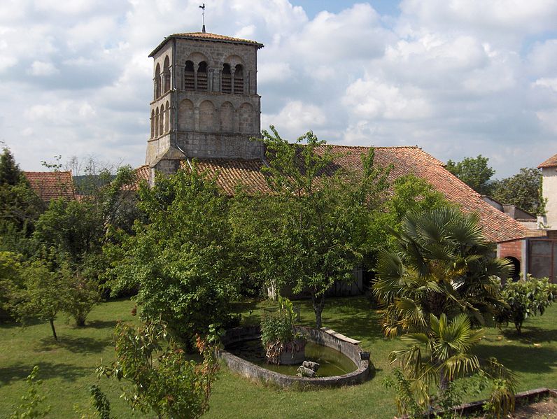 L'église Saint-Germain, construite au XIIe siècle, a été fortifiée pendant une période. Son plan est rectangulaire, composé d'une unique nef et d'une abside semi-circulaire. La nef, en trois travées, est décorée d'arcatures le long des murs nord et sud. Le carré du transept et l'abside sont plus étroits ; la coupole repose sur des pendentifs et l'abside est voûtée en cul-de-four. Du côté nord, une chapelle a été ajoutée au XVe siècle. On observe des vestiges de peintures murales représentant des fleurs. La façade occidentale a été en grande partie refaite. Le clocher, de plan carré et posé sur le transept, présente à sa partie inférieure un grand arc brisé ; l'étage intermédiaire est orné de quatre arcades en plein cintre. L'étage supérieur s'ouvre, sur chaque face, par deux grandes baies en plein cintre qui contiennent des fenêtres géminées sur colonnettes à chapiteaux sculptés.