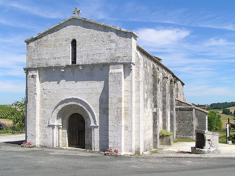 L'église Saint-Germain, relevant de l'ancien diocèse d'Angoulême, a été construite au XIIe siècle. L'édifice, mutilé, a perdu la voûte en pierre de sa nef. Orientée, elle présente un plan rectangulaire à une seule nef et un chevet plat. La nef, composée de trois travées, est rythmée par des arcatures établies sur des pilastres. Le carré du transept est plus étroit. Les chapiteaux des colonnes sont richement sculptés. Le chœur, d'une travée, est couvert d'une voûte à nervures datant du XVe siècle. Le pignon a été refait.