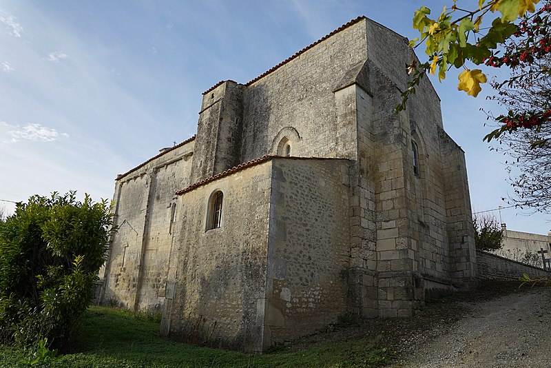 L'église paroissiale Saint-Jacques de Belluire, de style roman saintongeais, se situe à Belluire (Charente-Maritime, Nouvelle-Aquitaine). La partie occidentale de l'édifice remonte au XIIe siècle ; au XIIIe siècle, l'ancienne abside semi-circulaire a été remplacée par un chevet plat. La façade est presque entièrement occupée par un vaste portail en plein cintre, à quatre voussures retombant sur des colonnettes aux chapiteaux lisses. Sur le pignon obtus se dresse un campanile à une baie, qui abrite une cloche datée de 1768. L'église, construite sur la route de pèlerinage vers Saint-Jacques-de-Compostelle, est implantée sur un terrain en pente et renforcée par de nombreux contreforts. À l'intérieur, les chapiteaux portent des sculptures romanes et reçoivent les retombées d'un arc doubleau aujourd'hui disparu, qui soutenait une voûte de pierre en tiers-point dont les départs restent visibles. Une charpente couvre désormais l'ensemble. Au XIVe siècle, l'abside avait été voûtée en ogive avec arcs à trois tores et formerets ; cette voûte a disparu et a été remplacée par un simple tillis de bois. L'édifice est dédié à Jacques le Majeur et est classé monument historique depuis 1973. Les observations extérieures signalent notamment le chevet plat, les modillons et la lisibilité du volume depuis la route, tandis que l'intérieur présente les chapiteaux sculptés et les traces de l'ancien voûtement.
