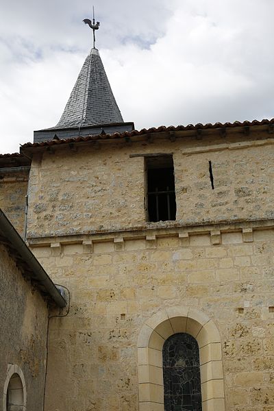 L'église Saint-Jean-Baptiste est principalement datée du XIIe siècle ; seules deux chapelles formant le transept ont été ajoutées vers 1850. Sa voûte est en berceau brisé en pierre et le chœur est couvert en cul-de-four. L'arc triomphal repose sur des colonnes engagées ornées de chapiteaux à volutes. La façade occidentale est percée d'un portail en plein cintre muni d'un vantail du XVIIe siècle ; à gauche de l'entrée se trouve une table de la Loi en pierre, vestige de l'affectation au culte protestant au XVIe siècle. Au‑dessus de la corniche, les parties latérales et le chevet portent une galerie de défense avec archères, élevée durant les guerres de Religion ; la partie inférieure de la façade, aménagée à la même époque, est également percée de deux archères. Un clocher surmonte la croisée du transept.