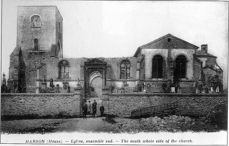L'église de Marson, dédiée à saint Nicolas, se situe dans la commune de Marson, dans le département de la Marne, en France. Elle date des XVe et XVIe siècles. L'édifice a été partiellement rebâti sans son bas-côté nord ; le bas-côté sud présente un nouveau plafond en béton et un portail Renaissance. L'église est classée au titre des monuments historiques par arrêté du 4 décembre 1915. Le chœur et les deux chapelles du transept sont voûtés. L'autel de l'abside est moderne et repose sur des pieds formés de statues en verre dépoli. Le clocher-tour, placé devant le portail occidental, abrite au rez-de-chaussée l'orgue qui occupe l'intégralité de cet espace. On relève la présence de vitraux dans la chapelle nord, ainsi que des éléments notables tels que le chœur, la nef et un pilier. L'église possédait un bas-relief du XVe siècle représentant la Vierge à l'Enfant accompagnée de trois donateurs agenouillés.