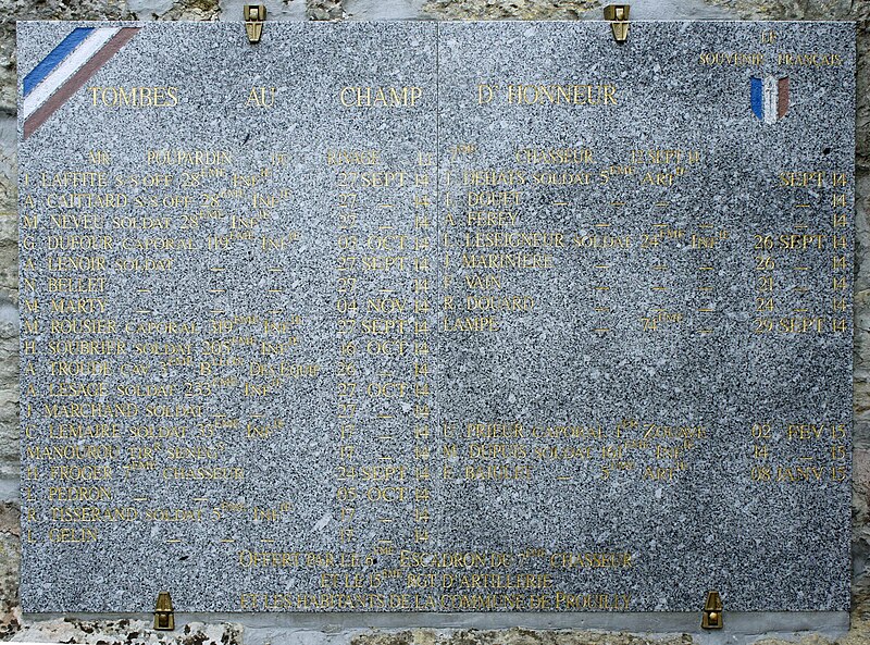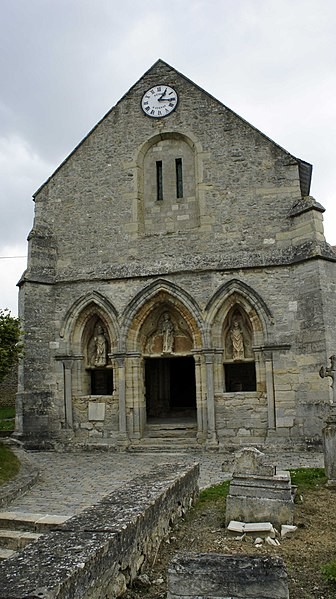 L'église Saint-Pierre, située à Prouilly dans la Marne, est datée des XIIe et XIIIe siècles et est décrite tant comme gothique que d'architecture romane. Elle est classée au titre des Monuments historiques depuis le 9 août 1921. Le porche occidental, doté d'une galerie, présente un tympan trilobé décoré de trois petites statues du XIVe siècle : au centre saint Pierre, vêtu d'une longue robe, tenant la clé dans la main gauche et un livre dans la main droite, flanqué de deux évêques mitrés, crosse à la main ; ces statues sont classées depuis le 10 mars 1908. Les fonts baptismaux, datés du XIIe siècle, sont classés depuis le 25 juillet 2002. Parmi le mobilier, une plaque mémoriale dédiée à Mlle Lacroix et aux bienfaiteurs Gaudin, Fauvet et Wargnier comporte un bas-relief de la Crucifixion daté de 1555 et une épitaphe ornée d'un encadrement sculpté de 1507, ensemble classé depuis le 23 octobre 1908. Les lambris de revêtement et la balustrade de la tribune, boiseries du XVIe siècle ornées de panneaux à motifs de parchemins plissés et d'écussons, sont également classés depuis le 23 octobre 1908. Des toiles représentant le Christ en croix (XVIIe siècle) et saint Jérôme (XIXe siècle, restaurée en 2009), ainsi que des statues en pierre de saint Jean-Baptiste, de saint Bernard et de la Vierge à l'Enfant (XIXe siècle), ont été classées en 1999. Le chemin de croix, réalisé en 1858 par le peintre François Clovis Hécart-Gaillot (1813–1882) et offert par les paroissiens, a été restauré en 2009 et classé le 25 juillet 2002.