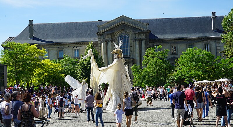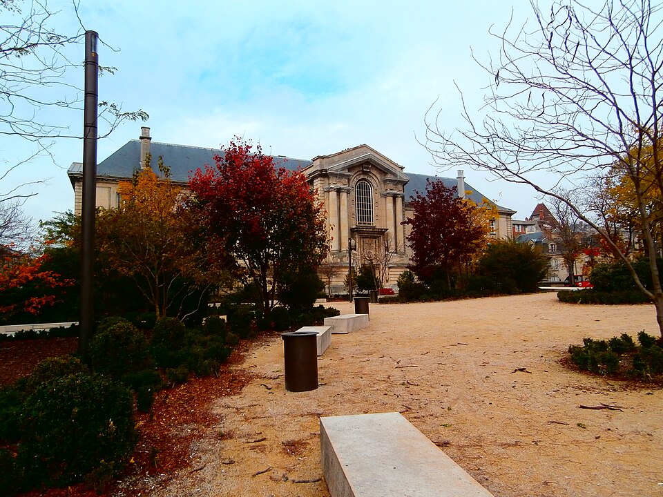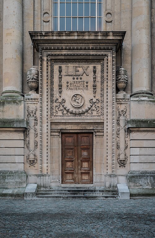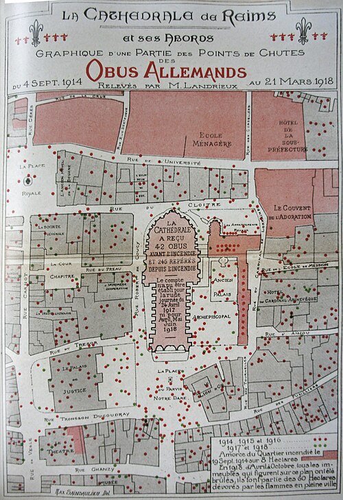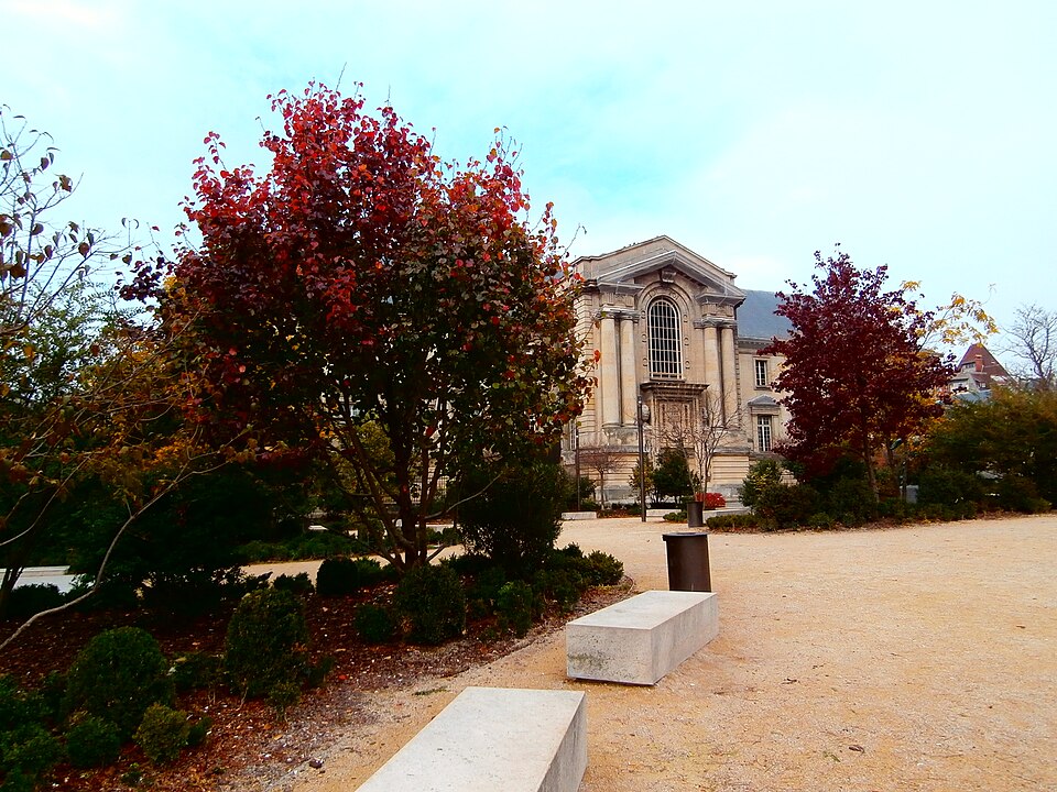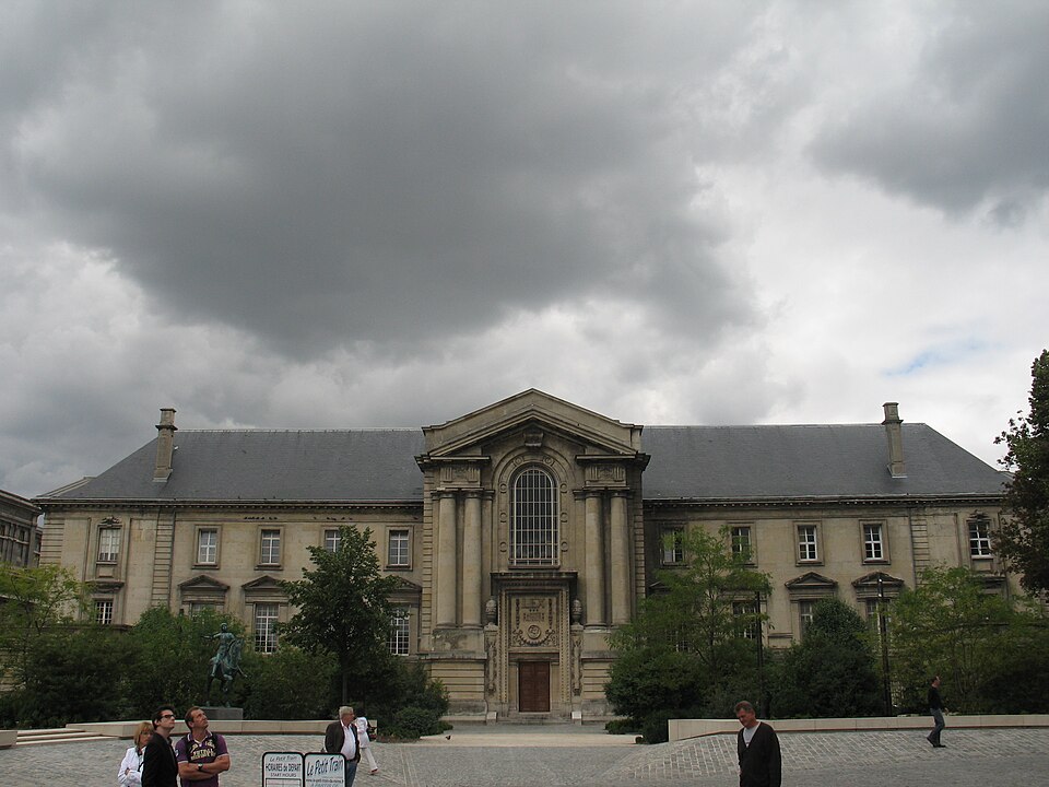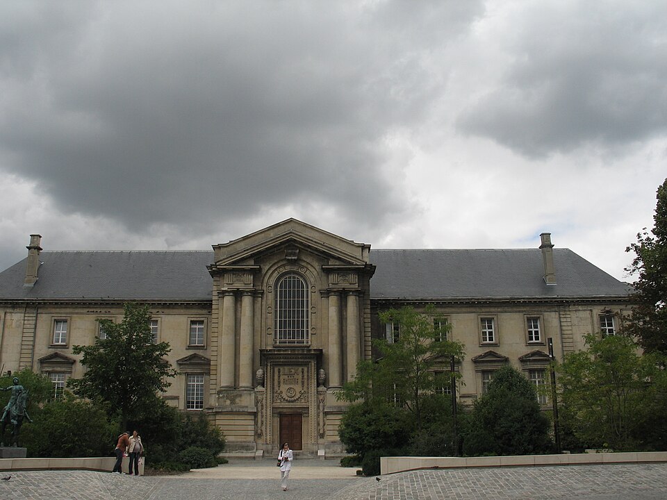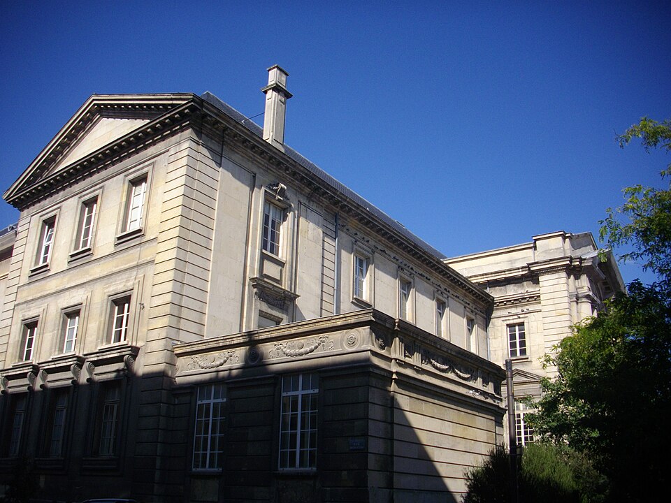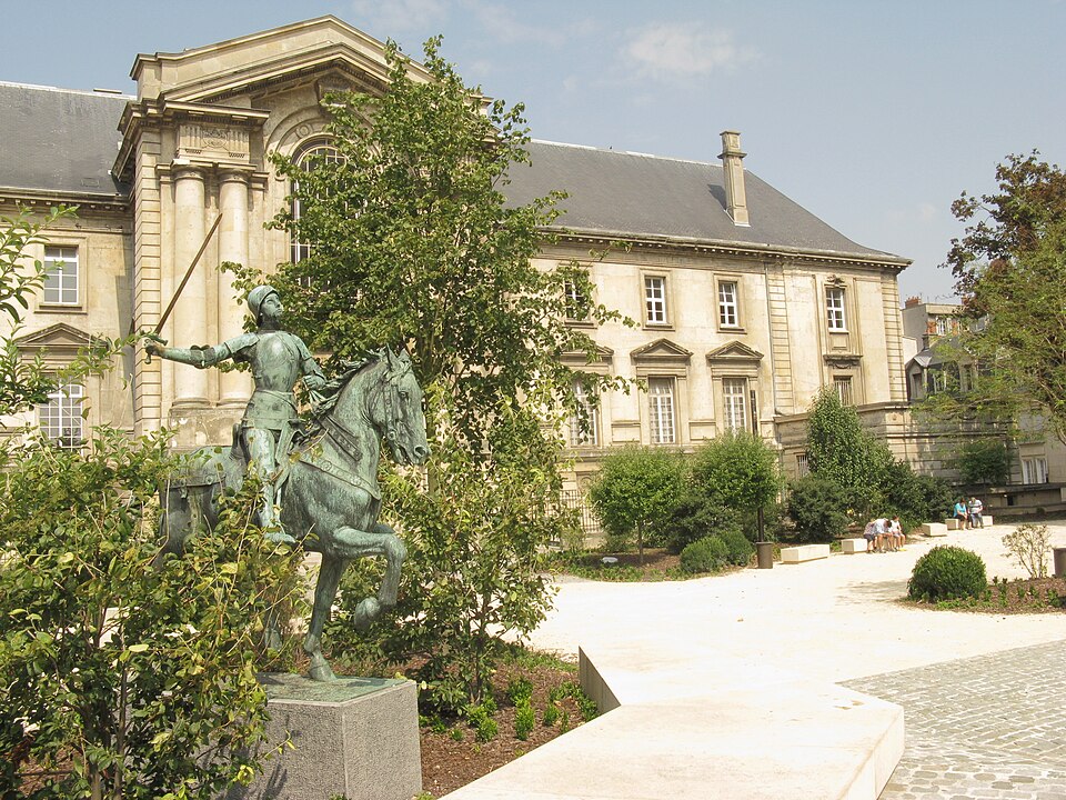 Le palais de justice de Reims, installé à l'emplacement de l'ancien hôtel-Dieu, occupe le secteur entre la place du Cardinal‑Luçon et la place Myron‑Herryck au centre‑ville et est desservi par les tramways A et B ainsi que par de nombreuses lignes de bus du réseau Grand Reims Mobilités. Il abrite notamment le tribunal judiciaire et le tribunal de commerce ; la ville dispose par ailleurs d'un conseil de prud'hommes et d'une cour d'appel, la fusion des tribunaux d'instance et de grande instance ayant conduit à la création du tribunal judiciaire au 1er janvier 2020. L'origine de l'hôtel‑Dieu remonte à la fondation de l'évêché au début du VIe siècle : il accueillait voyageurs, indigents et malades et fut doté par plusieurs évêques de Reims. Deux grandes salles destinées aux malades furent attribuées à Hincmar et l'établissement fut administré par le chapitre cathédral, qui y déléguait des religieux puis, par la suite, des religieuses de l'ordre de Saint‑Augustin. Au XIVe siècle l'hôpital comprenait deux quartiers distincts pour hommes et femmes, comportant plusieurs salles et lits, et accueillait également une crèche pour enfants abandonnés ; au fil des siècles le personnel et l'organisation évoluèrent, comme en 1750 où l'on dénombrait religieuses, ecclésiastiques, ouvriers et domestiques, ainsi que des médecins et autres officiers. En 1789, l'hôtel‑Dieu disposait de revenus mentionnés à 175 000 livres et possédait sa propre chapelle dédiée à saint Nicolas. Au XIXe siècle, des postes d'externe et d'interne furent créés, mais les salles de soins devenant inaptes, l'hôtel‑Dieu fut déplacé ; l'Hôpital‑général occupa alors successivement l'ancien collège des Jésuites puis l'abbaye Saint‑Remi en 1826. L'institution possédait un important patrimoine mobilier — tentures, peintures et objets — dont une partie figure aujourd'hui dans les collections du musée de la ville ou appartient à l'établissement hospitalier actuel. Plusieurs architectes se succédèrent pour transformer l'ancien hôtel‑Dieu en bâtiment judiciaire : Auguste Caristie et l'architecte municipal Nicolas Serrurier ont conçu des projets, et Narcisse Brunette a dirigé les travaux en dessinant notamment une façade de style néo‑grec, tout en conservant une façade de style Louis‑XV et les anciens celliers gothiques. Pour permettre l'agrandissement du côté de la cathédrale, une maison d'arrêt datant de 1835 fut supprimée lors des travaux au début du XXe siècle ; l'édifice ancien fut en grande partie rasé pour construire l'actuel palais de justice, mais une salle souterraine semblable à celle du palais du Tau fut conservée et classée en 1930. Le fronton de la façade d'entrée, côté place Myron‑Herryck, porte un bas‑relief réalisé par Riondet et De Maghellen représentant la Justice tenant glaive et balance, et une statue de l'Intégrité due au sculpteur Jean‑Baptiste Farochon se trouve sous le portique. Le monument est documenté par des vues de façades et des dessins anciens, dont un dessin de Maquart en 1845, et son mobilier et ses éléments décoratifs font l'objet de vestiges conservés ou exposés localement.