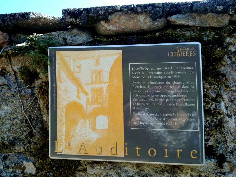 A partir du XIV° siècle, le pouvoir à Cervières est exercé par deux personnages : le capitaine-châtelain et le prévôt. Le bâtiment de l'Auditoire fut la résidence du capitaine-châtelain, et après la démolition du château au début du XVII° siècle sous Richelieu, il est aussi le siège de la justice à Cervières. La salle d'audience est appelée auditoire.