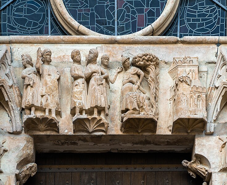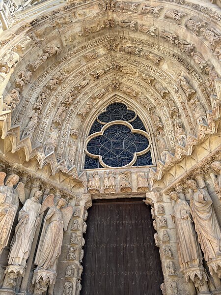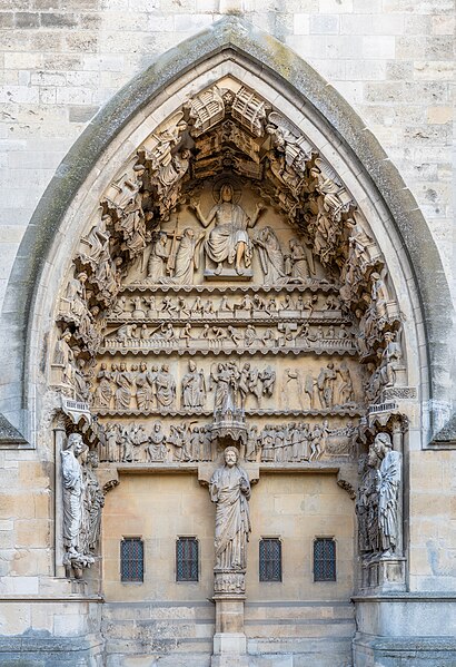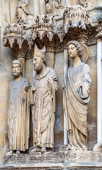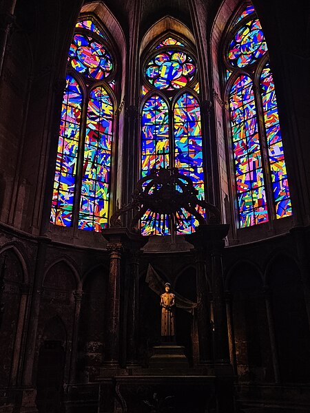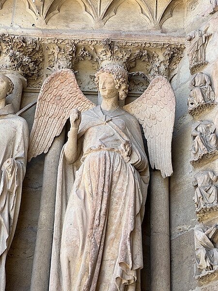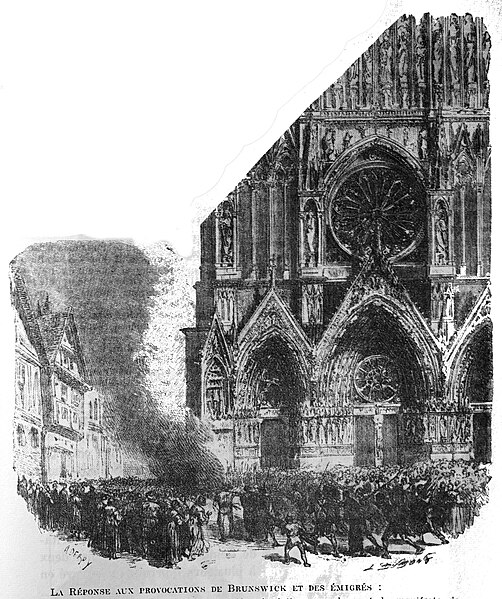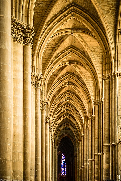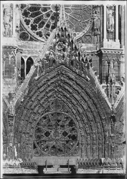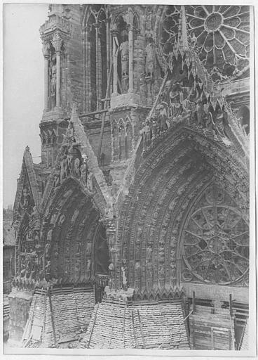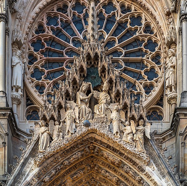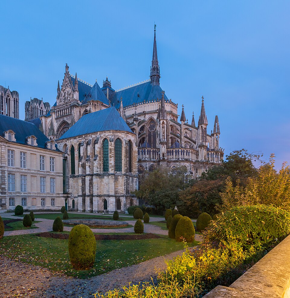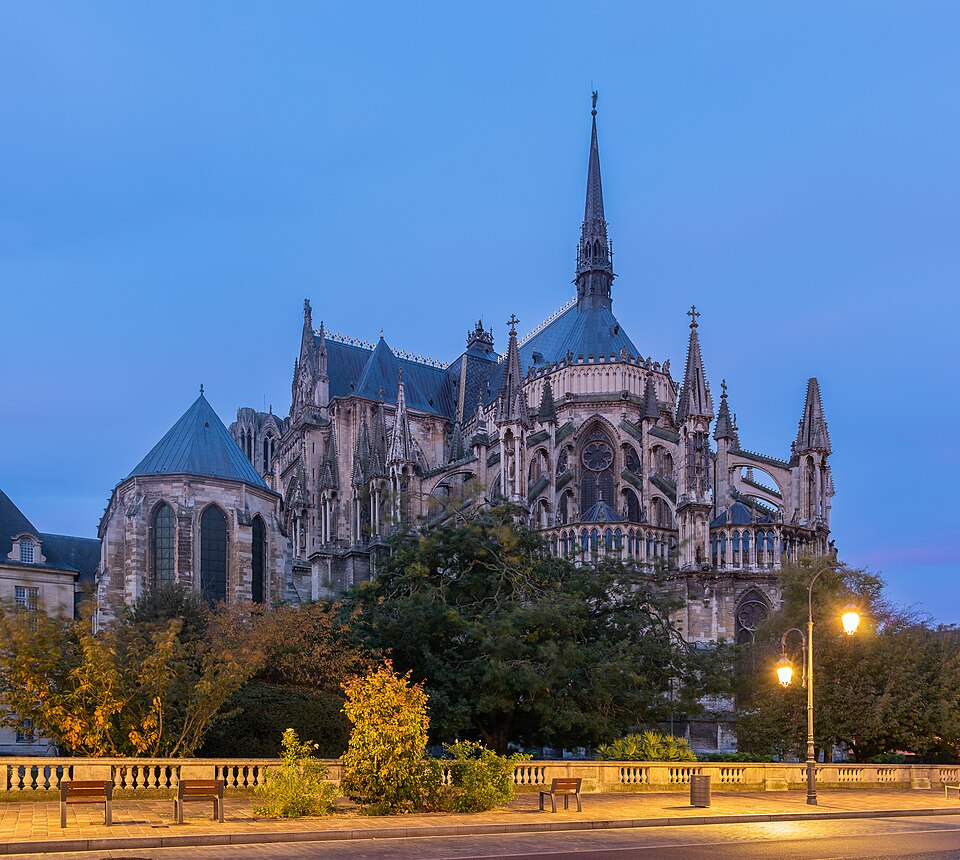 La cathédrale Notre-Dame de Reims, située dans la Marne en région Grand Est, est le siège de l'archidiocèse et la cathédrale métropolitaine de la province ecclésiastique de Reims. Dès le XIe siècle elle devint le lieu de la quasi-totalité des sacres des rois de France, conférant au monument un prestige national. Des textes et des vestiges, notamment ceux rapportés par Flodoard et Nicaise, attestent d'un lieu de culte rémois dès le Ve siècle, où se déroula le baptême de Clovis par l'évêque Rémi, dont la date fait l'objet de débats. Plusieurs cathédrales se sont succédé sur le même emplacement, la crypte primitive consacrée à saint Rémi servant de noyau aux reconstructions ultérieures. Après des remaniements carolingiens et des campagnes de reconstruction aux IXe et Xe siècles, l'archevêque Hincmar consacra une cathédrale en 862. Au milieu du XIIe siècle, d'importants travaux modifièrent la façade et le chœur, préparant la transition vers le premier art gothique. La construction de l'édifice actuel débute au début du XIIIe siècle ; la première pierre fut posée le 6 mai 1211 et plusieurs maîtres d'œuvre se succédèrent, dont Jean d'Orbais, Jean-le-Loup, Gaucher de Reims et Bernard de Soissons. Le triforium du chœur est amorcé dans les années 1220, le sanctuaire est livré en 1241 et la nef et la façade occidentale sont élevées dans la seconde moitié du XIIIe siècle, la grande phase de gros œuvre s'achevant vers 1275. La couverture définitive en plomb fut posée vers la fin du XIIIe siècle, la fourniture du matériau ayant été facilitée par des exemptions accordées en 1299. Un incendie en 1481 détruisit la charpente, le grand clocher central et les galeries de toiture ; la reconstruction bénéficia d'un soutien royal mais resta inachevée au début du XVIe siècle. Consacrée à la Vierge Marie, la cathédrale est l'une des réalisations majeures de l'art gothique en France, remarquable tant par son architecture que par une statuaire comptant 2 303 statues. La façade occidentale, commencée après 1252, comporte trois portails richement sculptés et une galerie des rois illustrant la vocation dynastique du lieu ; le portail central est exceptionnellement dédié à la Vierge. La cathédrale conserve de nombreux vitraux du XIIIe siècle et intègre, depuis le XXe siècle, des verrières contemporaines d'artistes tels que Marc Chagall et Imi Knoebel. Pendant la Première Guerre mondiale, la cathédrale, qualifiée de « cathédrale martyre », subit en 1914 un incendie ravageur provoqué par des bombardements : la charpente s'effondra, la grande rose et de nombreuses sculptures furent détruites et la ville fut largement atteinte. Au total, l'édifice reçut 288 obus pendant le conflit. Les travaux de restauration commencèrent en 1919 sous la direction d'Henri Deneux, avec l'aide de mécènes américains, et reposèrent sur la reconstruction de la charpente par une structure moderne en béton armé, inspirée de solutions anciennes. La remise en état de la façade occidentale et de sa statuaire s'est poursuivie par tranches depuis la fin du XXe siècle, avec des campagnes importantes entre 1989 et 2019. Classée au patrimoine mondial de l'UNESCO en 1991, la cathédrale demeure un haut lieu du tourisme local et a accueilli environ 1,5 million de visiteurs en 2007. Architectoniquement, elle présente une élévation à trois étages, une nef haute de 38 mètres, un plan en croix latine à chevet large et de grands arcs-boutants qui accentuent son élan vertical caractéristique du gothique. La pierre employée est principalement un calcaire lutétien extrait dans les collines au nord-ouest de Reims ; les restaurations du XXe siècle ont mobilisé des calcaires similaires ou de Courville pour respecter la patine originelle. Outre son rôle religieux et artistique, la cathédrale a été le théâtre d'événements symboliques, comme le sacre de Charles VII en 1429 lié à Jeanne d'Arc et la rencontre de réconciliation franco-allemande sous ses voûtes en 1962. Elle conserve un mobilier et des chapelles riches en œuvres, des orgues historiques, un carillon et une maîtrise de chant active depuis 1285, témoins de sa vocation liturgique et musicale continue. Tous les rois capétiens se firent sacrer à Reims, à l'exception de sept d'entre eux, ce qui explique l'importance politique et mémorielle attachée au site.