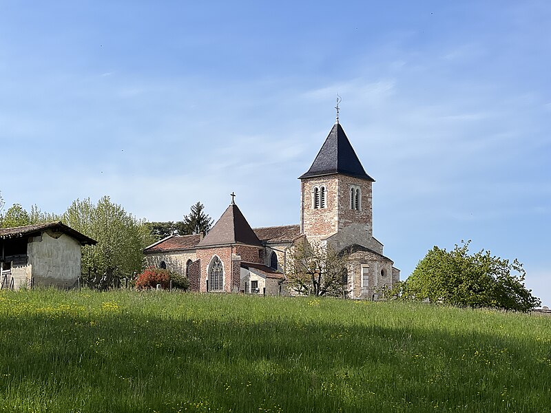 L'église Saint-Clair se trouve à Biziat (Ain), en Auvergne-Rhône-Alpes. La première mention d'une église à Biziat figure dans la charte de Charles le Chauve en 875. Elle fait l'objet d'une inscription partielle au titre des monuments historiques depuis le 23 juin 1947, portant sur le chœur et la chapelle sud. En 1774 le clocher est détruit et la voûte reconstruite à sa base, puis un nouveau clocher est édifié en 1802. Vers 1855 le porche est supprimé et la nef allongée d'une travée de 5,30 m ; au début du XXe siècle la voûte de briques de la nef est démolie. L'édifice, d'une surface de 363 m², présente une nef de 22,30 m sur 7,70 m et un chœur de 3,75 m par 7,10 m ; le clocher, élevé sur le chœur, est ajouré sur chaque face par une ouverture géminée. La flèche, haute de 7,50 m, est couverte de tuiles plates ; la voûte à double nervure repose sur des culots sculptés aux clés ornées et s'éclaire par une fenêtre gothique à meneaux et à tympan. Le vitrail primitif pourrait être l'œuvre des artistes ayant réalisé les verrières de l'église de Brou, des fragments ayant été remplacés dans le réseau supérieur du vitrail actuel, et le vitrail le plus important représente la Résurrection du Christ.