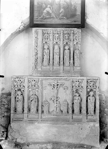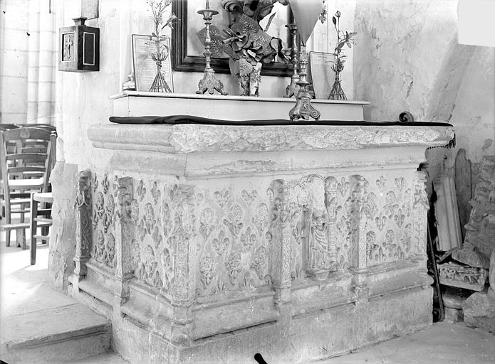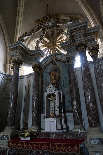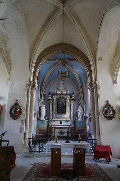 Le mobilier protégé comprend un retable en pierre du XVe siècle et trois autels ornés de fleurs de lys de la même époque ; parmi eux, l'un est classé, un autre est doté d'une statue de sainte Barbe, et le troisième, décoré de roses, est également classé. Le mobilier peint comporte notamment une Annonciation, une représentation de saint Nicolas et un chemin de croix.