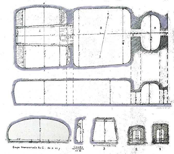 Les grottes de Saran constituent un ensemble d'hypogées de la fin du Néolithique, situées à Chouilly dans la Marne. En 1806 puis en 1852, deux tombes creusées dans la craie furent découvertes au lieu-dit Les Tombeaux ; elles furent détruites en 1854 lors de la construction d'un pressoir et sont connues principalement par la description de l'abbé Barré en 1866. La première tombe, de forme elliptique avec une entrée ovale orientée au sud‑est et fermée par une dalle en meulière, mesurait 5,10 m de long, environ 3 m de largeur et 1,10 m de hauteur ; elle contenait une trentaine de squelettes disposés dos contre les parois, jambes dirigées vers le centre, ainsi qu’un petit mobilier composé de haches, de lames en silex et de perles en craie, os et verre, dont la plupart avaient disparu au moment de la visite de Barré. La seconde tombe, découverte en avril 1852, comprenait un puits d'environ 1 m d'ouverture fermé par deux pierres, un court couloir et une chambre en forme de « four » de 4,20 m sur 3,40 m et 1,10 m de hauteur ; elle présentait des traces d'outils bien visibles, une petite banquette aménagée dans la paroi, un orifice d'aération fermé côté extérieur par une pierre et renfermait 48 squelettes, dont l'un avec le bras coupé. Le mobilier associé à cette seconde tombe comprenait trois vases, une quinzaine d'outils en silex, des éléments en bois et os de cerf (emmanchures de haches, cuiller), des fragments de chêne pétrifié, des parures (anneaux en craie, perles en verre) et une tête d'animal grossièrement sculptée dans un bloc calcaire, peut‑être un mouton. Durant les terrassements réalisés à proximité du château de Saran furent mises au jour quatre nouvelles tombes, dont trois (II à IV) furent explorées. L'hypogée nommé « grotte IV » est classé au titre des monuments historiques par arrêté du 10 mars 1961. Le percement accidentel de la voûte de l'hypogée I, sous le chemin menant de Cramant à Chouilly, révéla de nombreux ossements ; après prélèvement de quelques silex, le trou fut rebouché par les ouvriers. Les hypogées II à IV se trouvent plus à l'est, à une dizaine de mètres de l'aile sud du château, presque alignés selon un axe sud‑sud‑est / nord‑nord‑ouest et espacés d'environ 6 m sur un terrain en pente de 10 à 15°. Le sous‑sol, constitué d'un banc de craie à bélemnites homogène, a facilité le creusement, et un recouvrement d'environ 1 m de terre argileuse a assuré l'étanchéité des tombes. L'accès de chaque hypogée se fait par un plan incliné orienté est/nord‑est, large de 1,50 à 1,80 m et descendant jusqu'à 3 m de profondeur, et chaque ensemble comporte trois salles en enfilade reliées par des ouvertures de tailles variables. Dans l'hypogée II, l'ouverture cintrée et pourvue d'une feuillure laisse envisager une fermeture par une pierre ; la première salle est elliptique avec une voûte en coupole, la seconde ouverture est plus basse et également feuillurée, et les marques des outils restent visibles sur les parois. Dans le couloir reliant les salles 2 et 3 de l'hypogée IV, une paroi partiellement polie porte un bas‑relief constitué d'une tige longue de 0,97 m surmontée d'une rosace de 0,20 m de diamètre à six lobes ; Favret y voit une fleur, d'autres auteurs y ont reconnu un bâton de commandement surmonté d'un disque solaire, et une hypothèse propose que cette décoration résulte d'une réutilisation plus tardive de la tombe au Bronze ancien. Les hypogées furent découverts inviolés, les couloirs d'accès ayant été remblayés avec la craie extraite lors du creusement mélangée à d'importants dépôts de charbon, et la première salle de chaque hypogée a été trouvée presque dépourvue de matériel, hormis des traces de charbon et quelques ossements épars, ce qui suggère qu'elle n'était pas utilisée pour les dépôts funéraires. L'hypogée II contenait dix squelettes enchevêtrés (sept adultes, deux individus plus jeunes et un enfant) dans la deuxième salle, puis six squelettes d'adultes et les restes d'un enfant dans la troisième salle ; l'hypogée III renfermait six squelettes d'adultes et les ossements de deux jeunes enfants dans la deuxième salle et dix squelettes d'adultes dans la troisième ; l'hypogée IV n'a livré que trois squelettes d'adultes dans la troisième salle. L'état de désagrégation et l'enchevêtrement des os ont rendu l'identification précise difficile, le dénombrement reposant principalement sur le recensement des crânes, au nombre d'environ trente au total. Le mobilier funéraire comprend des éléments de parure — coquillages percés, canines d'animaux percées, deux anneaux en ambre et une perle d'émeraude — ainsi que un petit mobilier lithique en silex (lames, lamelles, pointes de flèche) ; les coquillages correspondent aux espèces abondantes dans les dépôts coquilliers tertiaires locaux et les silex proviennent de rognons fréquemment rencontrés sous les falaises des environs.