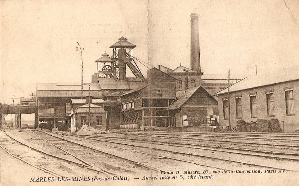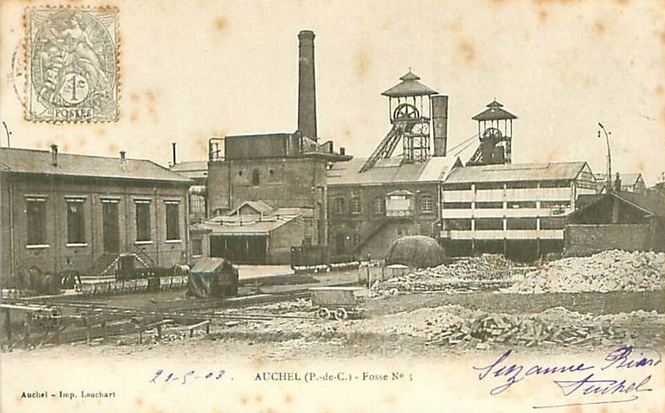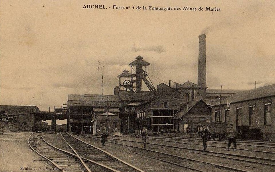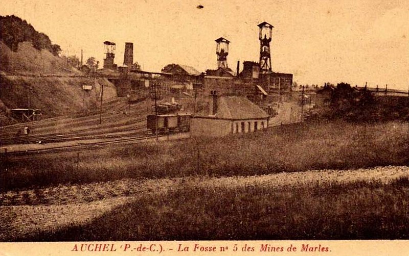 La mortalité infantile constituait un problème majeur pour les sociétés minières, le vieillissement des populations entraînant un manque de main-d'œuvre et l'appel à des travailleurs immigrés. En 1902, le conseil général du Pas-de-Calais et le préfet recommandèrent la création de consultations pour nourrissons et la généralisation des Gouttes de Lait, lieux de distribution de lait stérilisé ou pasteurisé aux mères. La Goutte de lait d'Auchel s'inscrit dans ce contexte et fut inaugurée en 1903. À l'ouverture, 204 mères étaient inscrites à la consultation et 18 bénéficièrent du service de la Goutte de lait pour 65 litres. Un pavillon particulier fut ensuite édifié près de l'hôpital. Avant son installation à Auchel, le bâtiment fut présenté à l'Exposition du Nord de la France à Arras en 1904 ; il avait été conçu dès l'origine comme une structure légère et préfabriquée en béton avec remplissage de briques, destinée à être remontée après l'exposition. Les plans sont dus à Charles Fournier et la façade principale portait un décor représentant des bébés buvant du lait et des vaches inscrites dans des cartouches. Le bâtiment avait la forme d'un grand T renversé : la barre accueillait l'entrée et les services, tandis que le centre comprenait un vestibule flanqué à gauche de la salle de pesage et du cabinet médical et à droite du laboratoire de pasteurisation disposant de deux guichets de distribution. De larges fenêtres assuraient l'aération et l'éclairement, et des radiateurs maintenaient une température de 18 à 20 °C pour éviter le refroidissement des enfants déshabillés. Destinée à la visite des femmes enceintes et des nouveau-nés, la Goutte de lait était un dispensaire de la Compagnie des mines de Marles ; elle est aujourd'hui propriété de la commune d'Auchel et fut bâtie à proximité de la fosse n° 5 - 5 bis - 5 ter. Les façades et les toitures ont été inscrites au titre des monuments historiques le 18 décembre 2009. Lors de la trente-sixième session du comité du patrimoine mondial, tenue du 24 juin au 6 juillet 2012 à Saint-Pétersbourg, le site n° 103, la Goutte de lait, a été inscrit sur la liste du patrimoine de l'UNESCO.