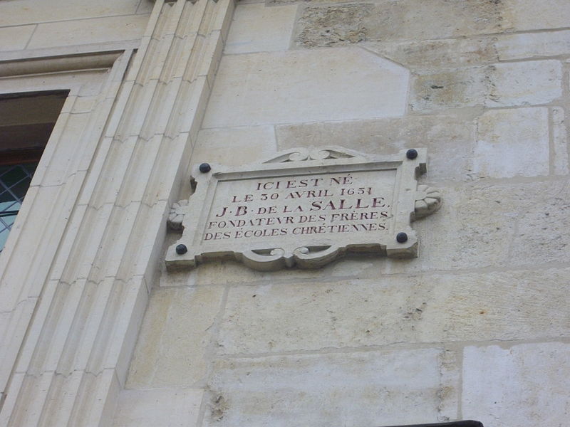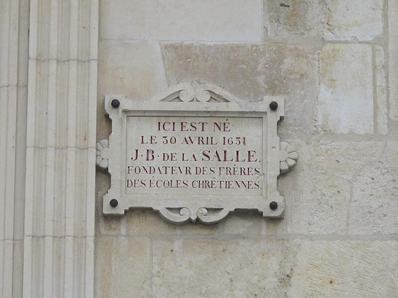 La maison natale de Jean-Baptiste de La Salle, ancien hôtel particulier du XVIe siècle situé rue du Docteur-Jacquin à Reims, est la demeure où naquit Jean-Baptiste de La Salle, fondateur de l'institut des Frères des écoles chrétiennes. L'édifice est classé au titre des monuments historiques depuis le 3 avril 1920. Témoignage de la Renaissance, l'hôtel présente une façade inspirée de l'Antiquité avec des pilastres doriques au rez-de-chaussée et ioniques à l'étage. La cour intérieure conserve un escalier à vis menant aux étages, coiffé d'une tourelle en brique datée de 1556-1557, et son décor rappelle les pilastres cannelés et la frise à triglyphes de la façade. L'hôtel fut édifié à partir de 1545 par Henri Choilly, bourgeois de Reims et riche négociant en drap. Il porta successivement les noms d'Hôtel des Sacqs de la Hérissandière et d'Hôtel de la Cloche Perce avant d'être dénommé d'après la famille qui l'acheta en 1609. En 1650 la famille de La Salle, noble et de magistrats, y résidait ; Louis de La Salle, conseiller du roi au présidial de Reims, y vivait avec son épouse Nicolle Moët de Brouillet. Leur aîné, Jean-Baptiste, naquit le 30 avril 1651 et passa dans cette maison ses treize premières années, de 1651 à 1664. Devenu chanoine de la cathédrale de Reims, il abandonnera sa charge et sa fortune pour se consacrer à l'apostolat scolaire et fonder l'institut des Frères des écoles chrétiennes. L'édifice, bombardé et incendié pendant la Première Guerre mondiale, dut sa survie et sa restauration au propriétaire de l'époque, Jean Lhose, directeur de la Maison de Biscuits de Champagne Fossier, qui y avait son siège social et sa fabrique. La maison fut soigneusement restaurée en 1920 par Marc Margotin et Louis Roubert. Une statue de saint Jean-Baptiste de La Salle a été placée dans une niche de la façade en 1952. Les Frères y disposent aujourd'hui d'un centre de recherches doté d'une bibliothèque. Après une importante campagne de restauration engagée en 2014, un nouveau parcours muséographique, ouvert en mai 2015, présente l'histoire de l'institut et de son fondateur. La galerie d'images rassemble des vues prises avant les destructions de la Grande Guerre, une salle photographiée en 1910 par Eugène Auger, une cheminée, une "Marie à l'Enfant" du XVIe siècle et une salle de classe reconstituée.