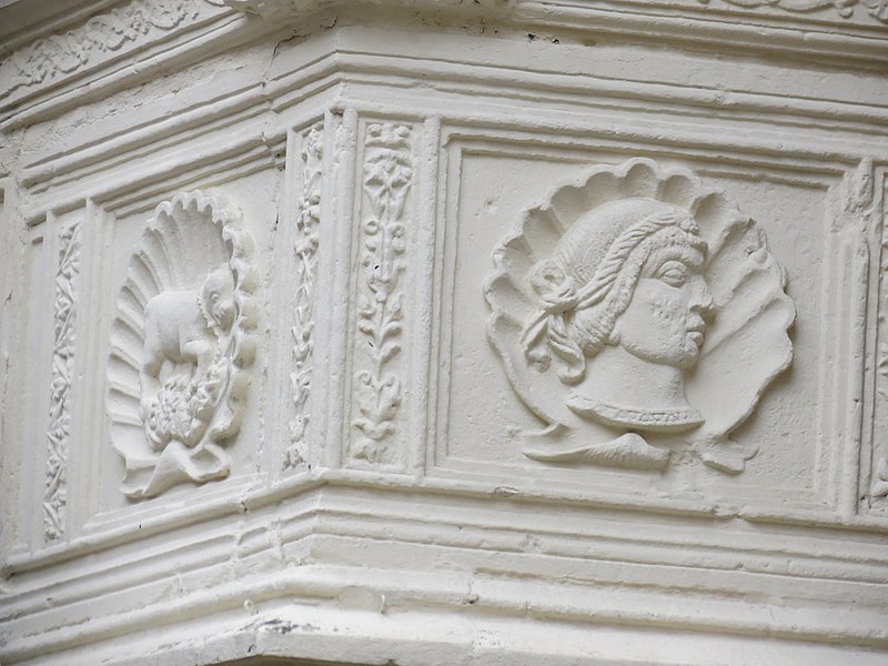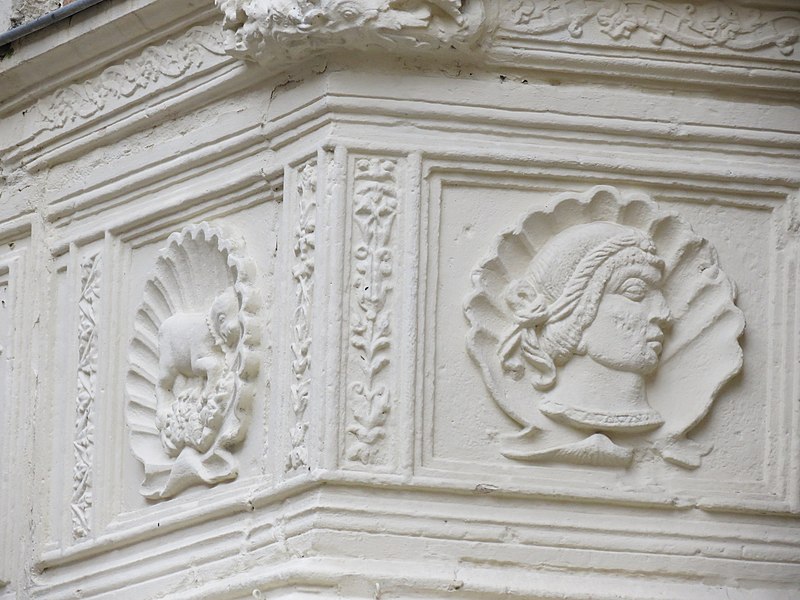 Eléments d'architecture sculptés de style Renaissance dans la cour de l'immeuble dans la Sarthe