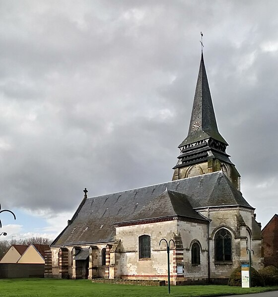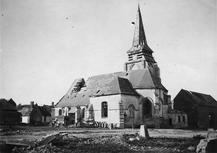 L'église Saint-Georges de Cerisy se situe au centre du village de Cerisy, dans la Somme, à environ 35 km à l'est d'Amiens. La construction remonte au XIIIe siècle pour le clocher et la nef, le reste de l'édifice datant du XVIe siècle. Elle fut en partie détruite pendant la Première Guerre mondiale et restaurée durant l'entre-deux-guerres. L'édifice est classé au titre des monuments historiques par arrêté du 5 août 1919. Construite en pierre, l'église présente un style gothique. Les deux portails latéraux, de style Renaissance, datent respectivement de 1576 pour le portail nord et de 1566 pour le portail sud, ce dernier étant orné d'une Descente de Croix où Joseph d'Arimathie soutient Jésus, au centre de la Vierge et des Saintes Femmes. Le clocher possède un portail refait au XVIIIe siècle et un carillon qui sonne régulièrement des airs religieux, tels que l'Ave Maria, ainsi que des airs populaires comme Au clair de la lune, Le Bon Roi Dagobert et J'ai du bon tabac. Après la Grande Guerre, on retrouva dans les ruines les débris d'une cuve baptismale en pierre sculptée du XIIIe siècle, qui fut restaurée. Les fonts baptismaux consistent en une vasque taillée dans un chapiteau reposant sur une courte colonne ; le chapiteau est orné de têtes humaines, un peu frustes, sculptées aux angles et d'une frise de motifs. L'église conserve également un bas-relief en pierre du XVIe siècle représentant la Descente de Croix, classé monument historique depuis le 1er avril 1915, une statue en bois doré du XVIIe siècle représentant saint Georges à cheval piétinant un dragon, classée depuis le 25 avril 1908, trois panneaux sculptés en bois du XVIIIe siècle représentant la Visitation, l'Annonciation et le Christ au mont des Oliviers, classés depuis le 1er avril 1915, des fresques murales du XVIIe siècle dans la nef et la sacristie, ainsi que des ferronneries réalisées par Jean Veyren.
