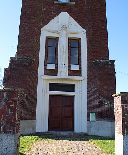 L'église Saint-Martin de Cléry-sur-Somme se situe sur la commune de Cléry-sur-Somme, dans le département de la Somme, près de Péronne. L'édifice actuel remplace une église du XVe siècle qui avait fait l'objet de reconstructions partielles aux XVIIIe et XIXe siècles. Le village et son église furent totalement détruits pendant la Première Guerre mondiale ; le 27 juillet 1916, lors de la bataille de la Somme, des observateurs allemands furent aperçus dans le clocher, qui fut alors bombardé. La reconstruction, menée pendant l'entre-deux-guerres, a été confiée à l'architecte Jacques Debat-Ponsan. Des documents d'archives — plan cadastral de 1830, carte postale vers 1910 et photographies des ruines à la fin de la guerre — témoignent de l'ancienne implantation du bâti et d'une configuration urbaine aujourd'hui modifiée. Quelques vestiges de l'ancien cimetière subsistent, notamment une croix sculptée sur une pierre tombale à droite de l'église. L'ancienne construction était en brique ornée de pierre calcaire sur les deux contreforts de la façade du clocher ; ce clocher massif à quatre niveaux comportait un balcon à rambarde de pierre et une tour‑escalier sur le côté droit. L'édifice reconstruit adopte un plan basilical traditionnel. Les soubassements, pilastres et le tympan des entrées sont en pierre de Savonnières, tandis que les murs sont en brique. De nombreux éléments structurels — planchers du clocher et des sacristies, poteaux, dalles de couverture, linteaux des baies et abat‑sons, ossature des voûtes et des plafonds, poutres maîtresses droites et arquées, chevrons, faîtage, soutiens de plafond et gargouilles — ont été réalisés en béton armé. Chaque travée de la nef est couverte par un toit à deux pans présentant un pignon dégagé. Le clocher‑porche est quadrangulaire, soutenu par quatre contreforts ; sa lanterne octogonale abrite une horloge. Le gable du portail principal est décoré d'un Christ monumental et d'anges sculptés sur place par Louis‑Aimé Lejeune en 1933. Le peintre‑verrier Jacques Grüber a exécuté en 1931 cinq verrières figurées et six grisailles. Le mobilier liturgique, dessiné par Jacques Debat‑Ponsan, comprend un maître‑autel en marbre poli avec retable et table d'exposition en marbre rouge, un candélabre et une croix en Duranic fournis en 1932 par l'entreprise amiénoise Grujon et Galland ; s'y ajoutent un confessionnal réalisé en 1932 par le menuisier Gustave Tattegrain, un chemin de croix commandé à l'entreprise Guillon et Cie de Levallois‑Perret, une statue équestre de saint Martin en chêne ciré fournie par l'entreprise parisienne « La Statue Religieuse » et un groupe sculpté en bois La Charité de saint Martin par Charles Desvergnes. L'église Saint‑Martin, y compris le mobilier maçonné (maître‑autel, fonts baptismaux) et l'ensemble des verrières de Jacques Grüber, fait l'objet d'une inscription au titre des Monuments historiques par arrêté du 9 avril 2024.