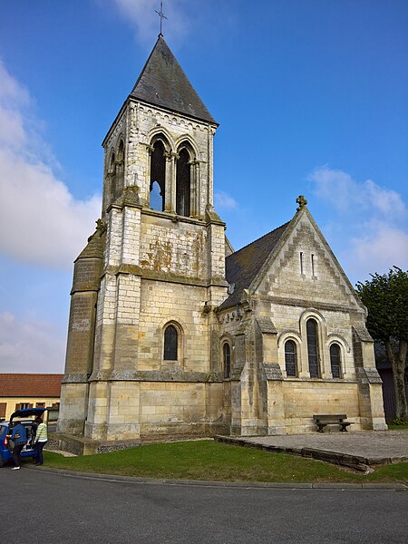 L'église Saint-Martin de Namps-au-Val est une église catholique implantée dans le hameau de Namps-au-Val, commune de Namps-Maisnil, dans le département de la Somme. L'édifice, construit en pierre, présente des éléments d'architecture romane et gothique. Il a été classé au titre des monuments historiques en 1846. Un certain nombre d'objets de l'église ont été inscrits au titre des objets le 10 avril 1979 : on y relève notamment un graffiti gravé portant l'inscription "l'an Mil CCCCLXXVI ... dieu ... Faicte" (1476), une statue en bois de saint Jean-Baptiste (XVIe siècle), ainsi qu'une gloire destinée à l'exposition du Saint-Sacrement et un maître-autel avec tabernacle en bois bruni doré (tous deux du XVIIIe siècle). Sont également inscrites une statue en bois de saint Martin évêque datée du premier quart du XIXe siècle, une Vierge au serpent en bois doré (XIXe siècle) et une statue en bois peint du Christ en croix (XIXe siècle) attribuée au sculpteur Ramboue (ou Rambout), collaborateur des frères Duthoit.