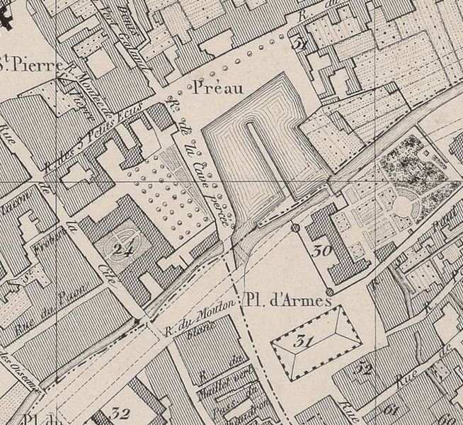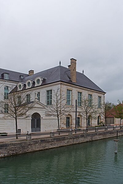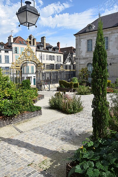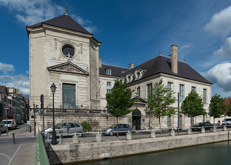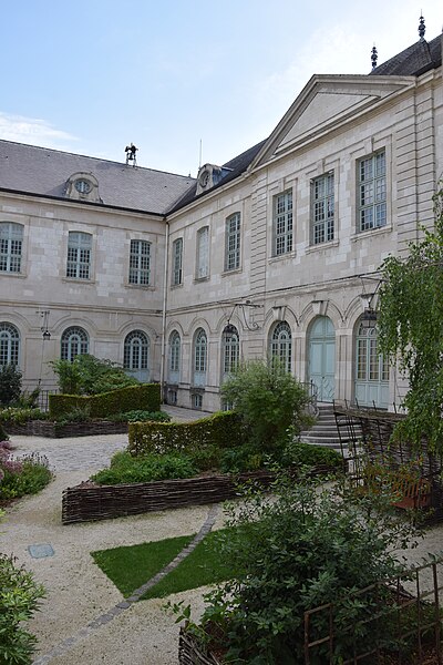 Les bâtiments connus aujourd'hui résultent d'agrandissements et de reconstructions successifs : don en 1270, extensions aux XVe siècles, rectification de la façade sur la rue de la Cité en 1631, puis reconstruction entre 1701 et 1764 qui lui a donné sa configuration actuelle. La grille monumentale est attribuée à Pierre Delphin et sa réalisation s'inscrit dans les travaux impulsés par l'évêque François Bouthillier et les maires Louis de Mauroy et Jacques Berthelin ; la chapelle occupe l'emplacement de l'ancienne porte urbaine dite la Girouarde. La grille fut classée parmi les monuments historiques en 1889, puis les façades et toitures des bâtiments en 1964.