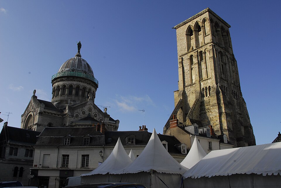 Située sur un haut lieu de la chrétienté médiévale, l'îlot occupe le site de l'ancienne Martinopole (Ve–Xe siècle) puis de l'abbaye Saint‑Martin de Tours. Dès la fin de l'Antiquité, la tombe de saint Martin a attiré pèlerins et dons : un édifice en bois y fut élevé par l'évêque Brice, puis Perpétuus fit bâtir une grande basilique dont la dédicace eut lieu le 4 juillet 470. La communauté qui desservait le sanctuaire acquit très tôt une importance spirituelle et matérielle, au point d'entrer dans les débats sur la règle monastique au haut Moyen Âge et de voir alterner moines, chanoines et abbés laïcs. La basilique connut incendies, sièges et reconstructions successives : elle fut incendiée par les Normands au IXe siècle, entourée d'une enceinte fortifiée au début du Xe siècle, puis reconstruite après des sinistres et remaniée au XIe siècle et aux siècles suivants, avec des voûtes sur croisées d'ogives au XIIe siècle et des travaux du XIIIe au XVe siècle qui agrandirent le chœur et ajoutèrent des chapelles. Au XVe siècle la basilique bénéficia du soutien de Louis XI, et au début du XVIe siècle le cloître fut partiellement reconstruit dans un style mêlant gothique et ornementation renaissance ligérienne. La châsse de saint Martin fut en grande partie détruite lors des troubles religieux de 1562, et l'édifice se dégrada progressivement jusqu'à la Révolution : en 1793 il fut transformé en écurie, et, après l'effondrement des voûtes en 1797, la municipalité ordonna la démolition de l'essentiel de la basilique. Des vestiges subsistèrent toutefois, notamment la tour Charlemagne, la tour de l'Horloge, des maisons canoniales avec la chapelle Saint‑Jean et la galerie orientale du cloître Renaissance ; ces vestiges furent classés monuments historiques dès la liste de 1840. Des fouilles menées dans les années 1970 montrèrent que l'ancienne basilique romane était enterrée de près de trois mètres par rapport au niveau actuel et que des fondations et piliers subsistaient sous la rue des Halles et sous les maisons voisines. La redécouverte du tombeau de saint Martin en 1860 relança les projets de restitution du site et provoqua de vives controverses architecturales ; un compromis de 1884 limita la nouvelle construction à un édifice plus modeste et perpendiculaire à l'ancien, conservant l'emplacement du chevet au‑dessus du tombeau. La basilique actuelle, de style néo‑byzantin, a été édifiée à la fin du XIXe siècle et inaugurée en 1890 ; sa crypte abrite toujours le tombeau de saint Martin. L'édifice, construit en calcaire, granit et marbre et couvert d'ardoises, fut décoré par Pierre Fritel avec l'aide d'Adrien Lavieille ; une statue monumentale en bronze de saint Martin, due au sculpteur Jean‑Baptiste Hugues et livrée par le fondeur Victor Thiébaut, orna le dôme dès 1889. La basilique fut consacrée le 4 juillet 1925 et son parvis achevé en 1928. En 1988 un gemmail intitulé « Le baiser au lépreux » a été installé dans la crypte. La statue de bronze, déposée en février 2014 en raison de détériorations dues aux intempéries, fit l'objet d'une restauration au cours de laquelle fut retrouvée une boîte contenant des reliques ; la statue restaurée fut réexposée à l'été 2016 puis replacée sur le dôme en octobre de la même année. Le président de la République porte le titre honorifique de chanoine ad honores de la basilique. Une plaque commémorative relative aux victimes d'agressions sexuelles au sein de l'Église a été posée dans la basilique en mars 2025. L'institution des Petits Clercs de Saint‑Martin, fondée dans les années 1920, a longtemps assuré, depuis une maison proche de la basilique, le service religieux quotidien et la formation de séminaristes pour le diocèse. L'orgue actuel, acquis par la ville en 1956 et restauré à plusieurs reprises, comporte deux claviers, un pédalier et dix‑sept jeux pour plus de 1 800 tuyaux ; ses titulaires et co‑titulares ont marqué la vie musicale du lieu. Enfin, l'ancien scriptorium de Saint‑Martin a produit plusieurs manuscrits carolingiens importants et la collégiale a compté parmi ses abbés et titulaires des personnalités ecclésiastiques et laïques notables au cours du haut Moyen Âge.