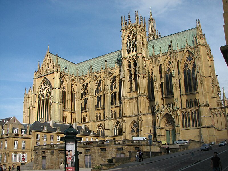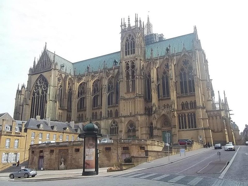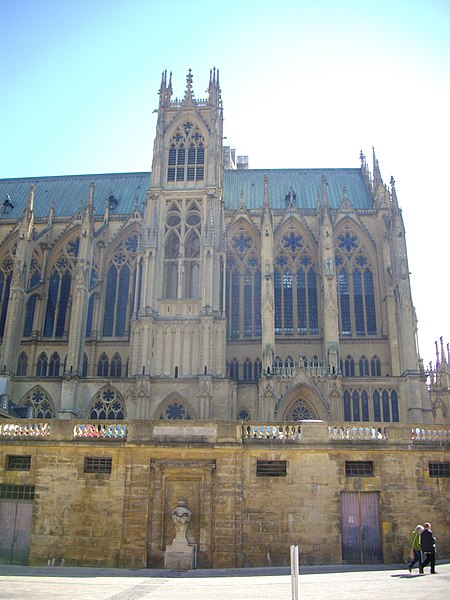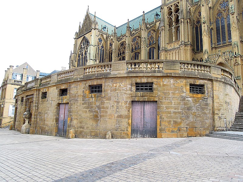 La place Saint-Étienne, à Metz (Moselle), borde la cathédrale Saint-Étienne et tient son nom de cette proximité. Elle est partiellement aménagée sur l'ancienne muraille du haut-empire et surplombe la place de Chambre d'environ six mètres. Historiquement, elle donnait accès à l'église Notre-Dame-de-la-Ronde et constituait un second accès à la cathédrale, reliée à l'origine par un large emmarchement qui occupait toute la largeur de la place. En 1763, Blondel la transforma en terrasse reposant sur des voûtes en fer à cheval et bordée de deux escaliers. La place était encadrée par deux corps de bâtiments symétriques : à l'est, les dépendances qui accueillent aujourd'hui la DRAC et les services des bâtiments de France ; à l'ouest, une nouvelle bibliothèque accompagnée d'un restaurant, ce dernier ayant été démoli en 1904 pour permettre l'élargissement de la rue d'Estrées. Au fil du temps, la place a porté plusieurs appellations : place des hauts degrés au XIVe siècle, place Jotte, puis place du pâté de la cathédrale en raison de sa forme arrondie, Parapet en 1795 et, durant la période révolutionnaire, place Étienne. Les escaliers et la terrasse de la place Saint-Étienne font l'objet d'un classement au titre des monuments historiques par arrêté du 23 janvier 1930.