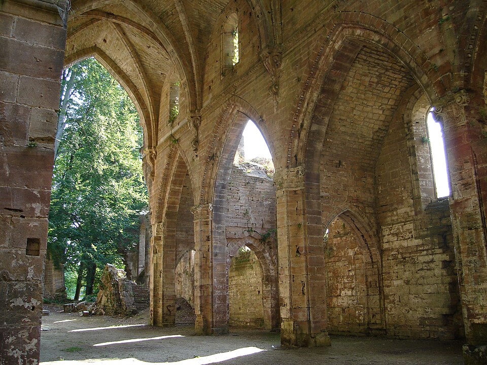 L'abbaye cistercienne de Trois-Fontaines, située dans la commune de Trois-Fontaines-l'Abbaye dans la Marne, fut fondée en 1118 dans le diocèse de Châlons-en-Champagne comme première fille de Clairvaux sous l'abbatiat de saint Bernard. Guillaume de Champeaux, évêque de Châlons, obtint de Hugues de Vitry un domaine dans la forêt de Luiz pour y établir une communauté cistercienne, et d'autres propriétaires firent ensuite des donations de terres. Le 10 octobre 1118 l'abbé Roger et quelques moines envoyés par saint Bernard quittèrent Clairvaux pour s'installer dans une clairière et fonder l'abbaye. Les dons successifs permirent aux moines de développer un vaste domaine et de créer de nombreuses granges, notamment à Villiers-en-Lieu, Vitry-en-Perthois, Wassy, Vic-sur-Seille, Saint-Dizier et Gueux près de Reims. Ils reçurent les forges de Wassy en 1171 avec le droit de prélever le bois nécessaire, exploitèrent les salines de Vic-sur-Seille en 1197 et acquirent le moulin de Frignicourt en 1237, combinant ainsi activités agricoles, industrielles et minières. Trois-Fontaines fut à son tour la mère de plusieurs fondations cisterciennes, parmi lesquelles Lachalade, Notre-Dame d'Orval, Hautefontaine, Cheminon, Monthiers-en-Argonne, Chatillon, Szentgotthárd, Pétervárad et Bélakút. Un de ses moines, Aubry, rédigea des chroniques couvrant l'histoire du monde jusqu'en 1241. Les religieux élevèrent d'abord une église en bois, rapidement remplacée par une construction en pierre dont les fouilles de 1963 ont montré l'existence et le plan « bernardin » inspiré de Clairvaux. La nef comportait des berceaux transversaux semblables à ceux de l'abbatiale de Fontenay, et l'ensemble paraît avoir été réalisé peu après Clairvaux, au cours du XIIe siècle. Il ne reste guère de traces des autres bâtiments conventuels médiévaux. Isolée dans la forêt et éloignée des grandes voies, l'abbaye conserva une relative intégrité au fil des siècles ; la pratique de la commende ne causa pas de destructions immédiates, le premier abbé commendataire connu étant Louis de Lorraine-Guise. Un incendie détruisit une partie des bâtiments en 1703 ; le cloître et le dortoir furent reconstruits à partir de 1716 après un accord entre les moines et l'abbé commendataire Henri Thiard de Bissy, et le portail d'entrée porte la date de 1741. Les bâtiments de la basse-cour et les écuries, incendiés par des hussards en 1711, furent relevés entre 1717 et 1741. Dès 1777 l'église servit également de lieu paroissial ; en 1785 on décida d'en modifier la configuration en supprimant le transept et le chœur, en construisant une nouvelle abside semi-circulaire par l'architecte Pierret de Wassy, et la décoration intérieure fut reprise sous la direction de l'architecte Joyeux entre 1786 et 1789. Malgré treize moines encore présents en 1791, l'abbaye fut vendue comme bien national en 1794 ; le nouveau propriétaire renonça au paiement et la cèda à M. Bourdon de Saint-Dizier qui fit vendre les matériaux, laissant les bâtiments dépouillés. Une gravure anglaise vers 1805 montre l'abbaye vidée de son mobilier et, en 1825, il ne restait plus que trois travées voûtées sur les huit de la nef originelle. Une famille de Saint-Dizier acquit ensuite la propriété et interrompit la destruction, mais l'église resta abandonnée, et une maison fut aménagée dans les anciens bâtiments en 1840. L'abbaye a été classée monument historique en 1944. Sur le plan architectural, la première construction en pierre du XIIe siècle présente des vestiges romans ; l'église, de plan cistercien inspiré de Clairvaux II, avait un plan en croix latine d'environ 70 m de longueur, un transept d'environ 40 m de long sur 12 m de large et un chevet rectangulaire de 6,50 m sur 6 m. La nef comprenait huit travées, chaque bras du transept comportait trois chapelles rectangulaires à l'est, et les croisées d'ogives sont d'origine bien que la forme des nervures ait été modifiée au XVIIIe siècle ; les bas-côtés portent des berceaux transversaux au voûtement très aigu. L'ensemble conventuel fut partiellement reconstruit au XVIIIe siècle dans un style classique aux accents baroques ; un portail monumental ouvre sur une cour fermée par deux hauts pavillons, tandis que l'église romane fut conservée mais redécorée et que ses arcs et ogives furent resculptés. Après la Révolution, l'abbaye fut en partie démolie ; subsistent le portail occidental et la nef voûtée sans toitures, des pans d'arcades gisent à terre et l'abside a disparu, formant un site au caractère romantique. Le domaine est aujourd'hui privé mais mis en valeur par une association qui l'ouvre au public ; le vaste parc conserve un bassin, des statues allégoriques et des arbres imposants, et le village de Trois-Fontaines-l'Abbaye s'est développé autour du monastère. Un lutrin en marbre provenant de l'abbaye se trouve à l'église Saint-Nicolas de Cheminon, et un musée du vélo réunissant 200 pièces est installé dans l'abbaye et ouvert les dimanches d'été. Sur le plan de la filiation, Trois-Fontaines est fille de Clairvaux et mère des abbayes précédemment citées.