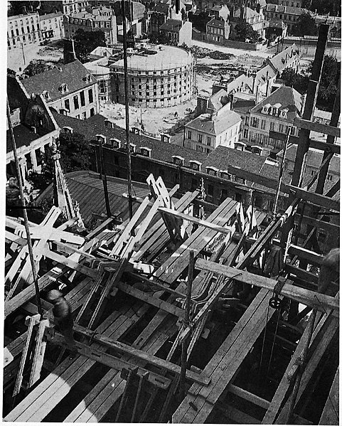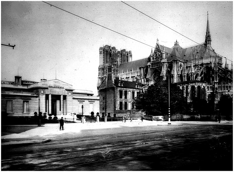 Le projet de construction prit une nouvelle ampleur après la destruction, par un obus incendiaire le 3 mai 1917, de l'hôtel de ville, malgré la mise à l'abri de certaines collections à Paris et dans les caves de l'église Sainte-Clotilde. La dotation Carnegie consacra au total 500 000 dollars à des opérations de reconstruction et affecta 200 000 dollars à la ville de Reims pour la création d'une nouvelle bibliothèque, selon des résolutions prises en 1917 et 1918.